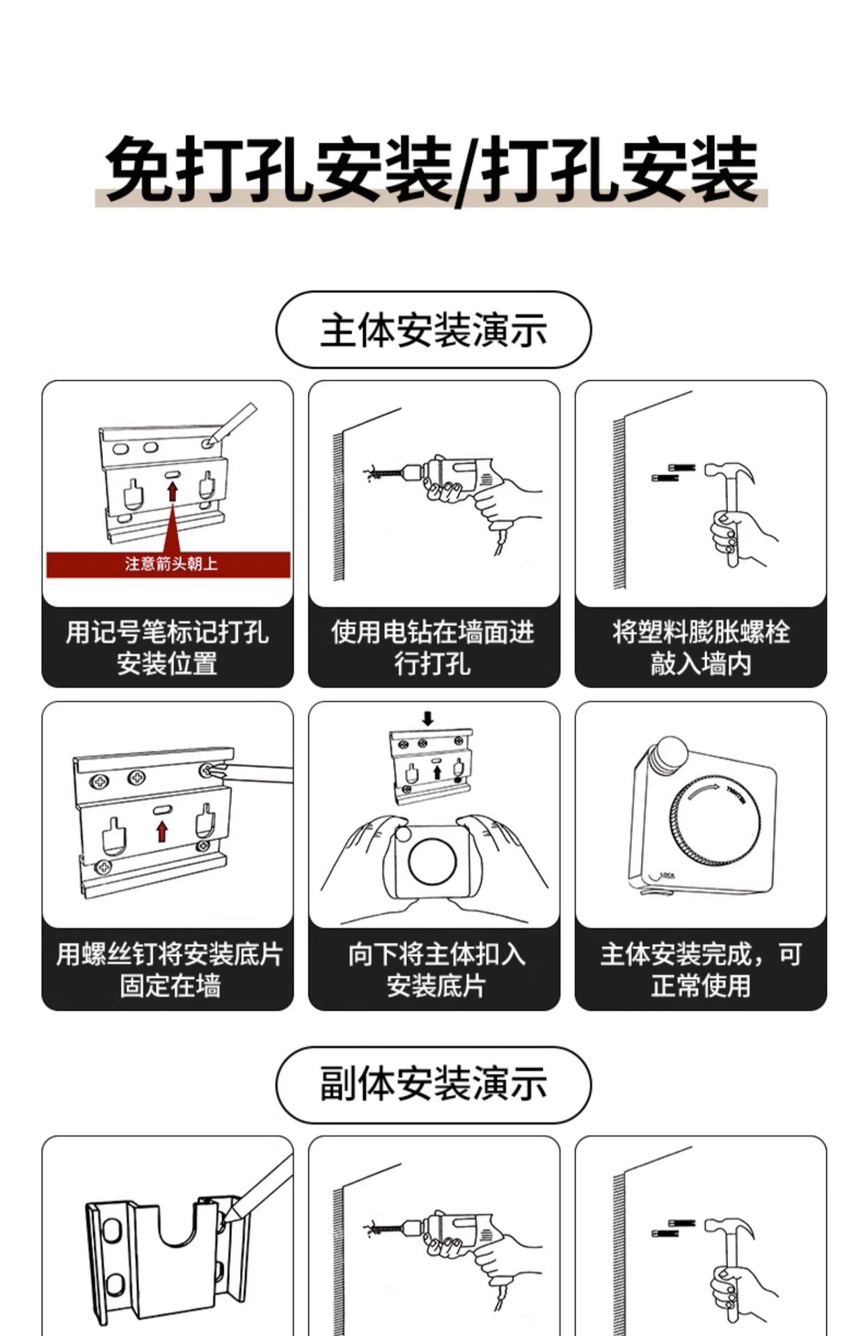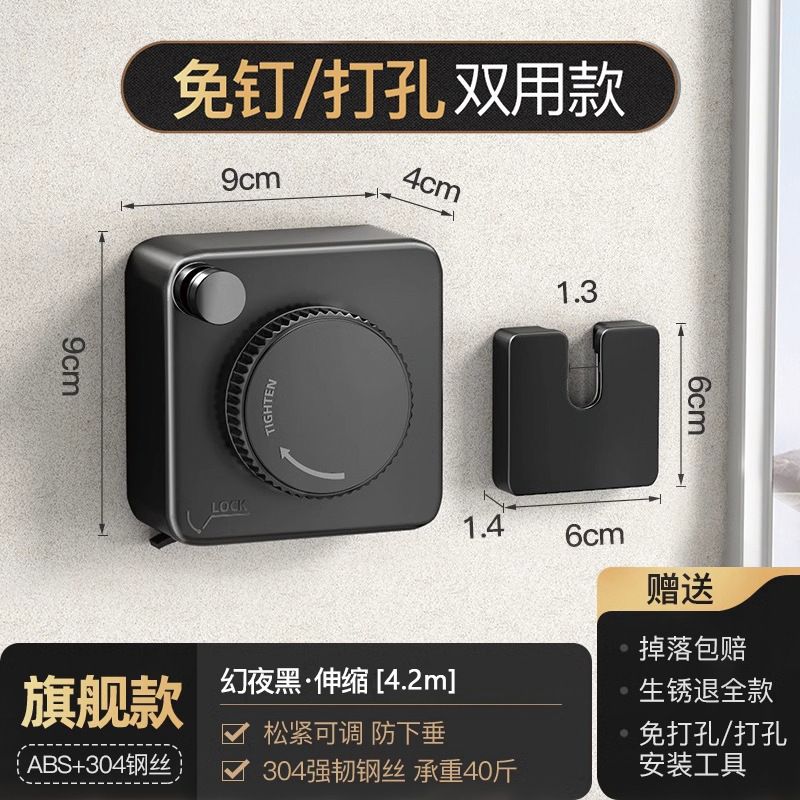 black-5.1m camera clothesline (punch/punch-free dual-use)