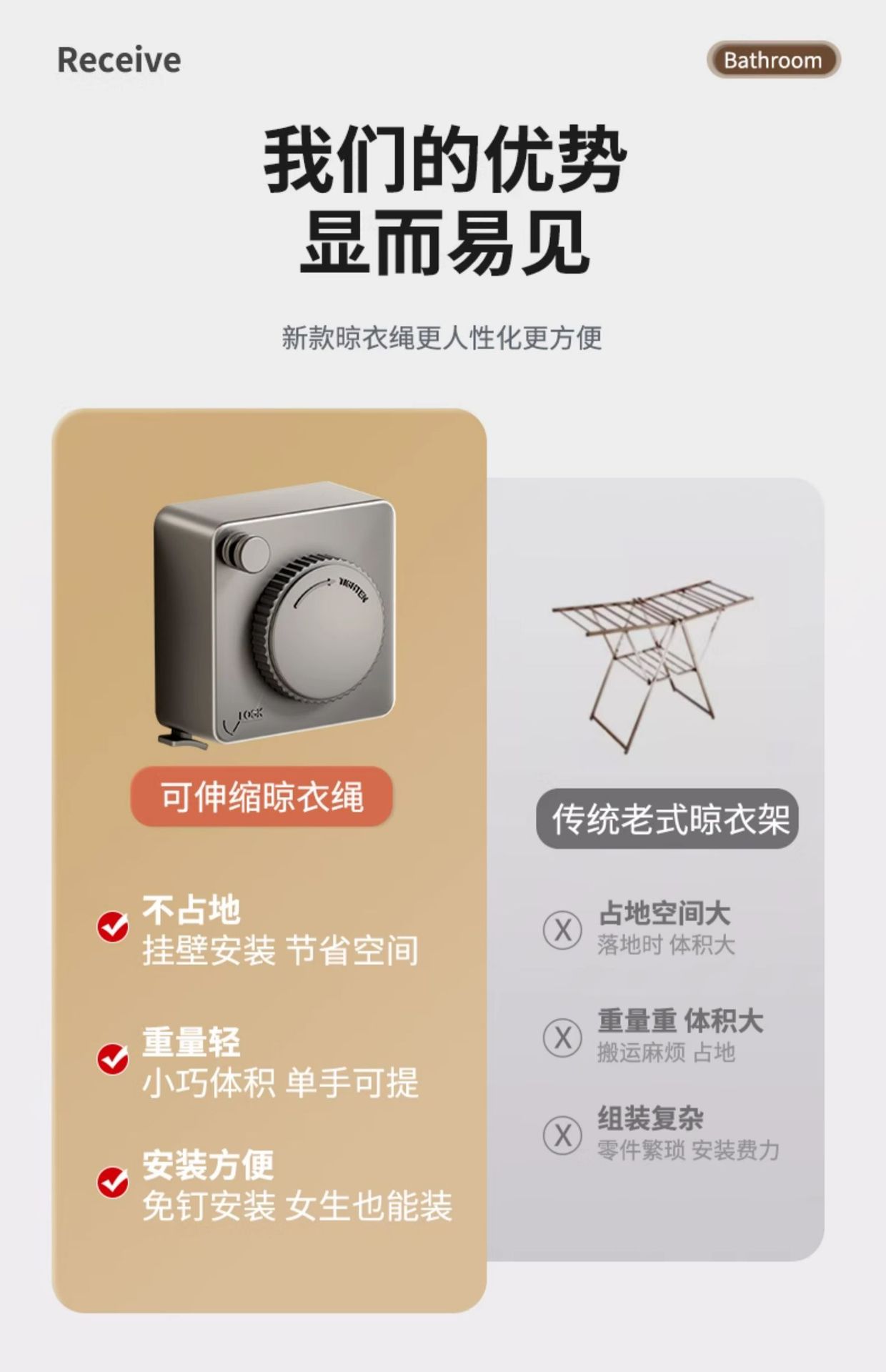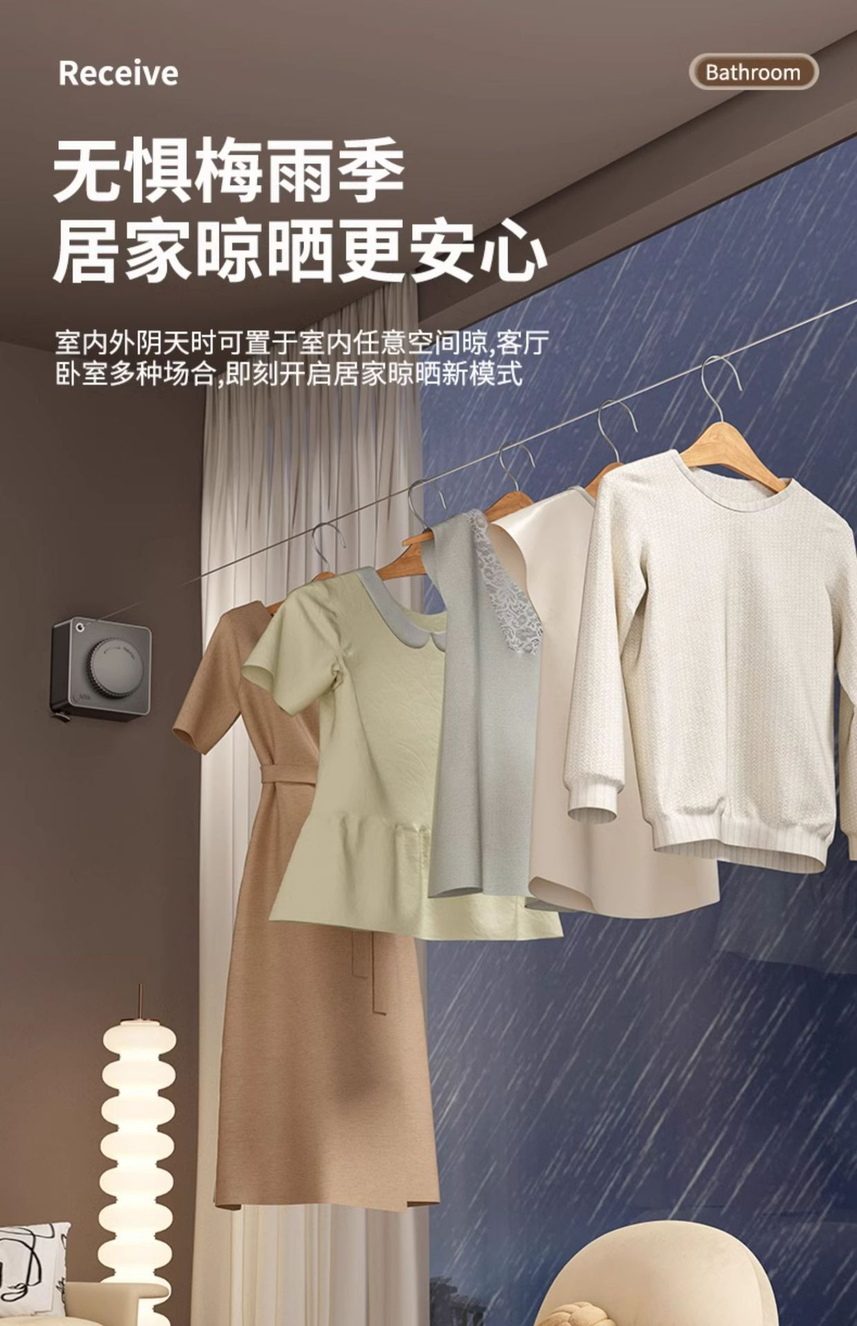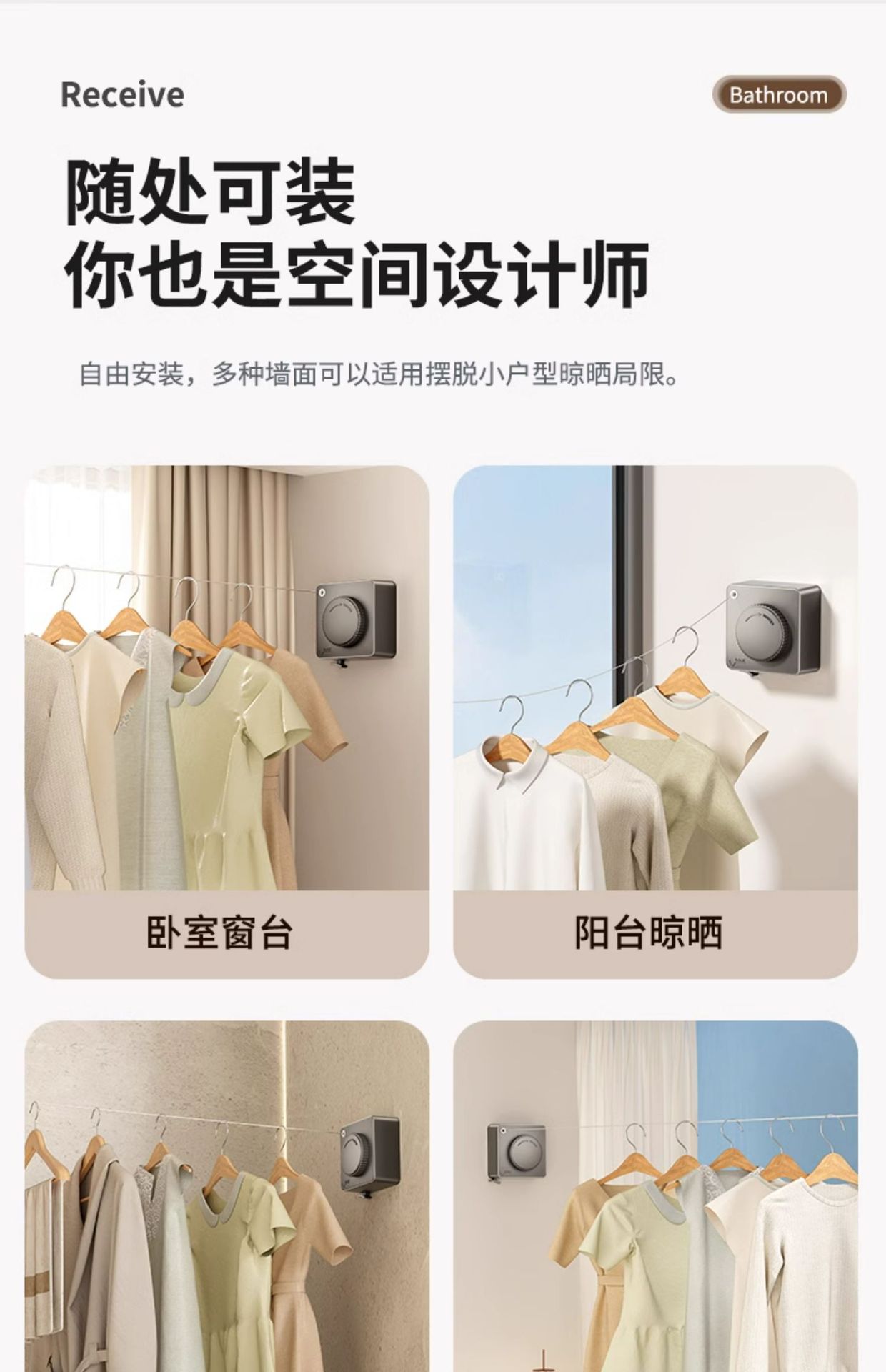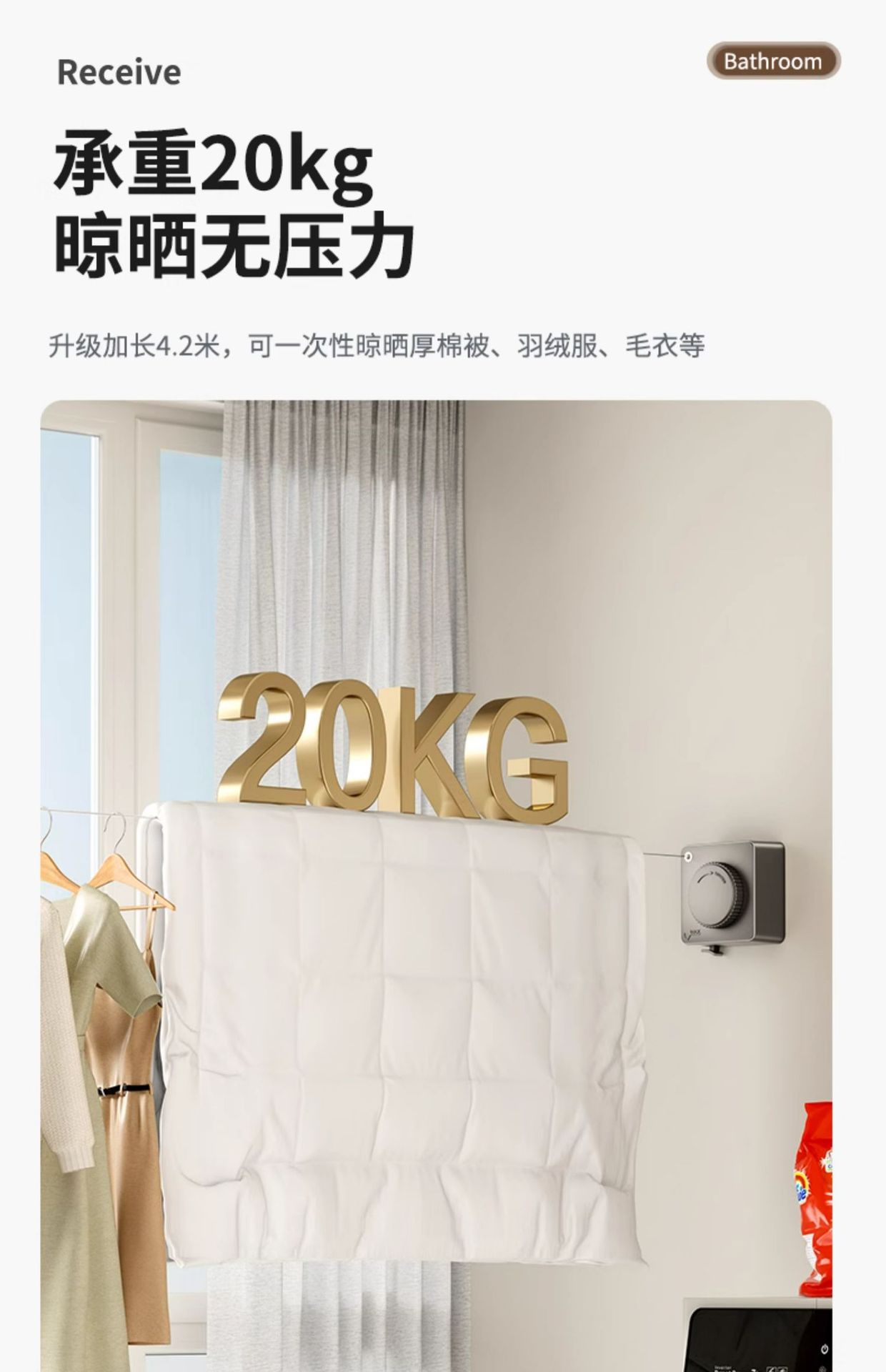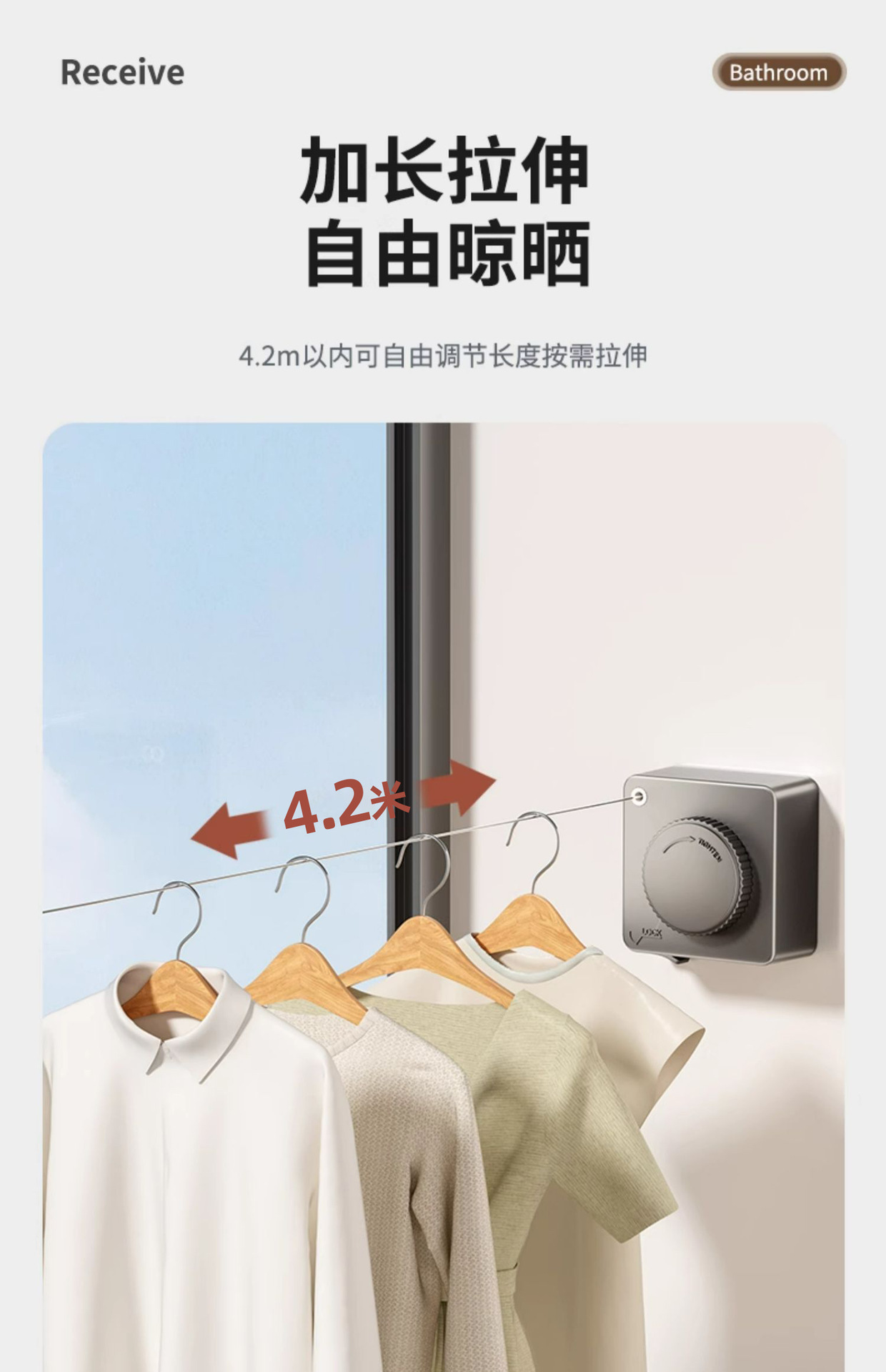 white-5.1m camera clothesline (punch/punch-free dual-use)