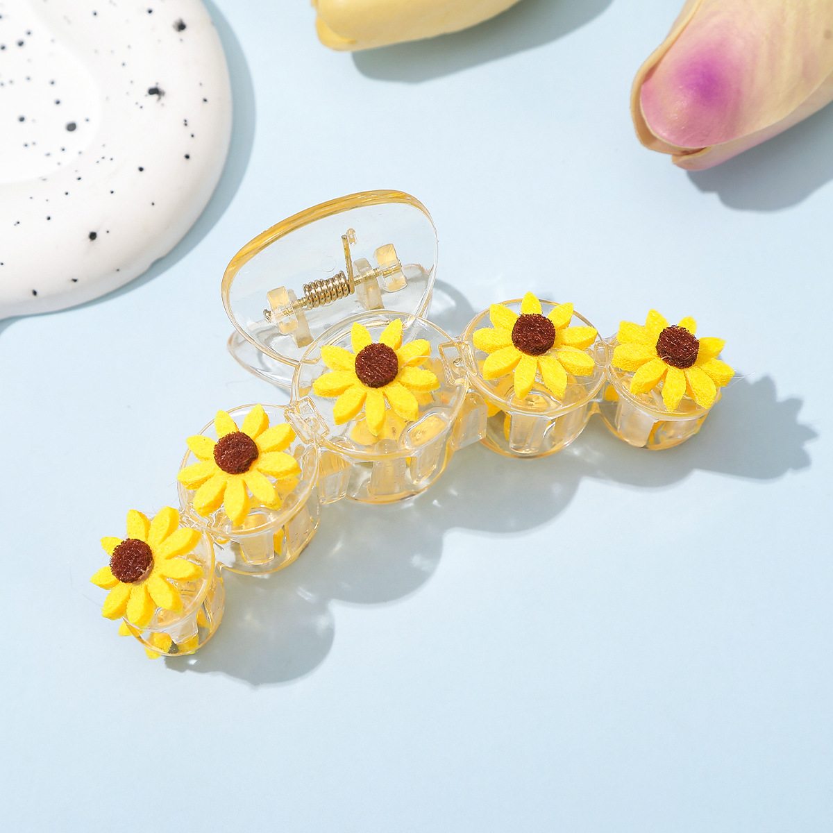 cross-border european and american spring and summer new cute sunflower all-match flower barrettes back head updo hair claw shark clip 中文版