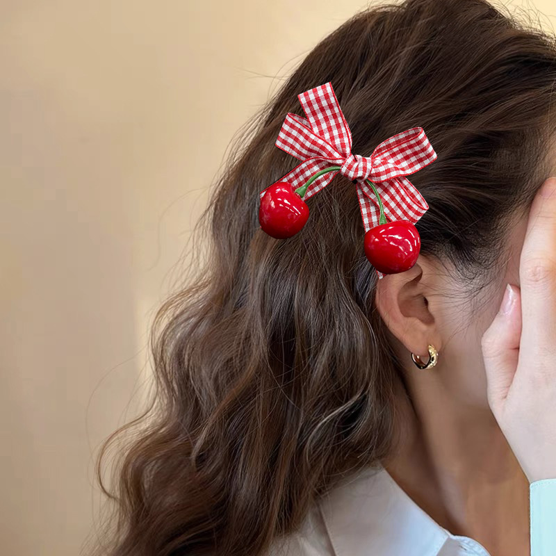 cross-border european and american girls heart cherry bow barrettes all-match side duckbill clip little fairy fashion trend barrettes 中文版