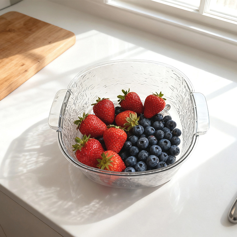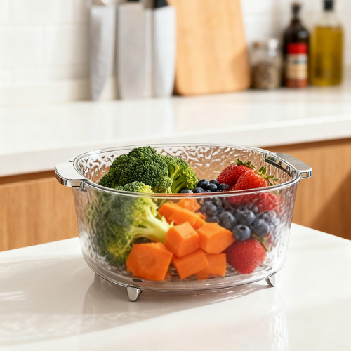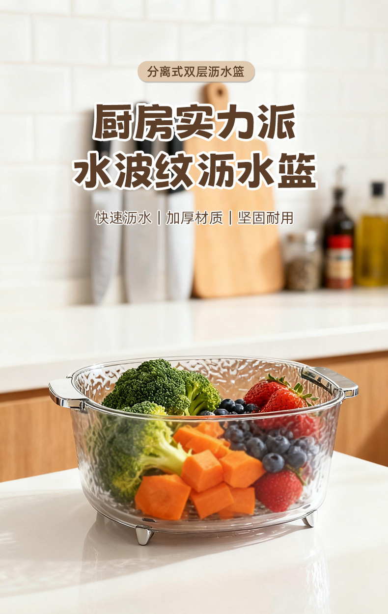 water ripple drain basket household food grade creative double layer extra thick and durable drain basket kitchen fruit and vegetable storage 中文版