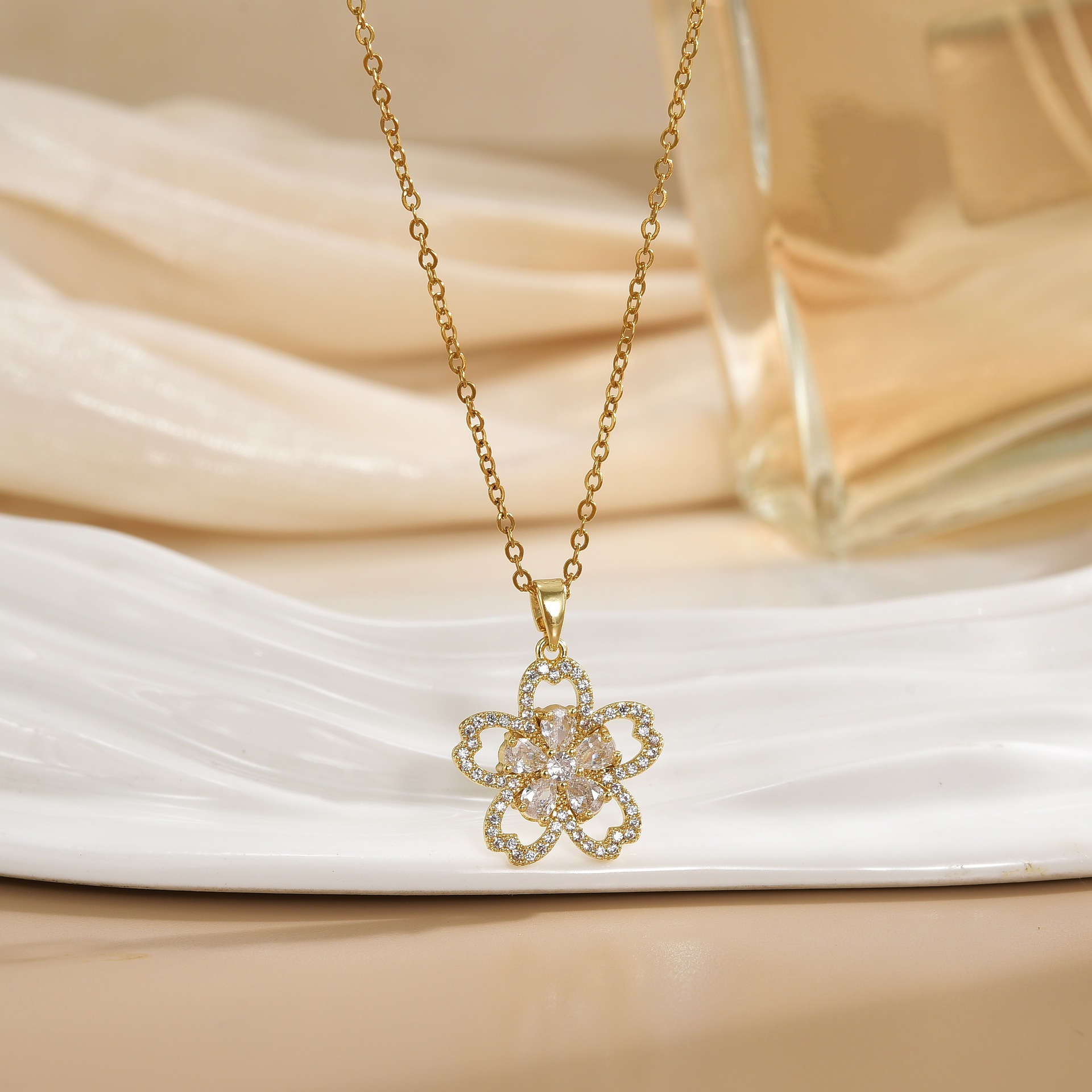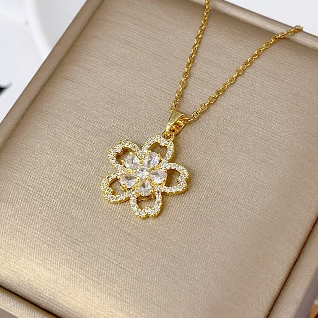 new affordable luxury fashion fresh sweet inlaid zircon flower necklace female temperament wild high sense ornament wholesale 中文版