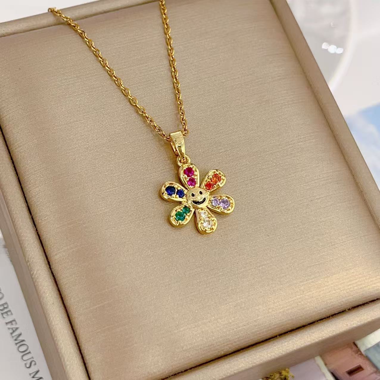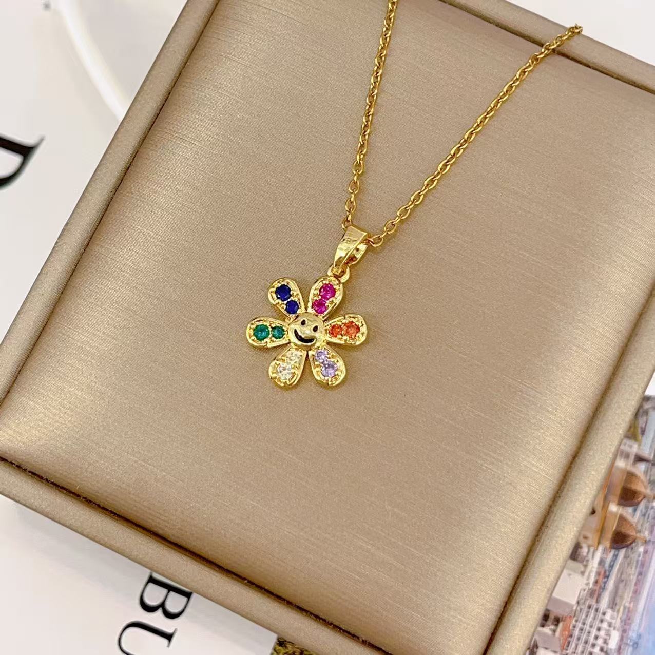 cross-border hot sunflower sunflower pendant necklace female special-interest design high sense micro inlaid zircon titanium steel accessories 中文版