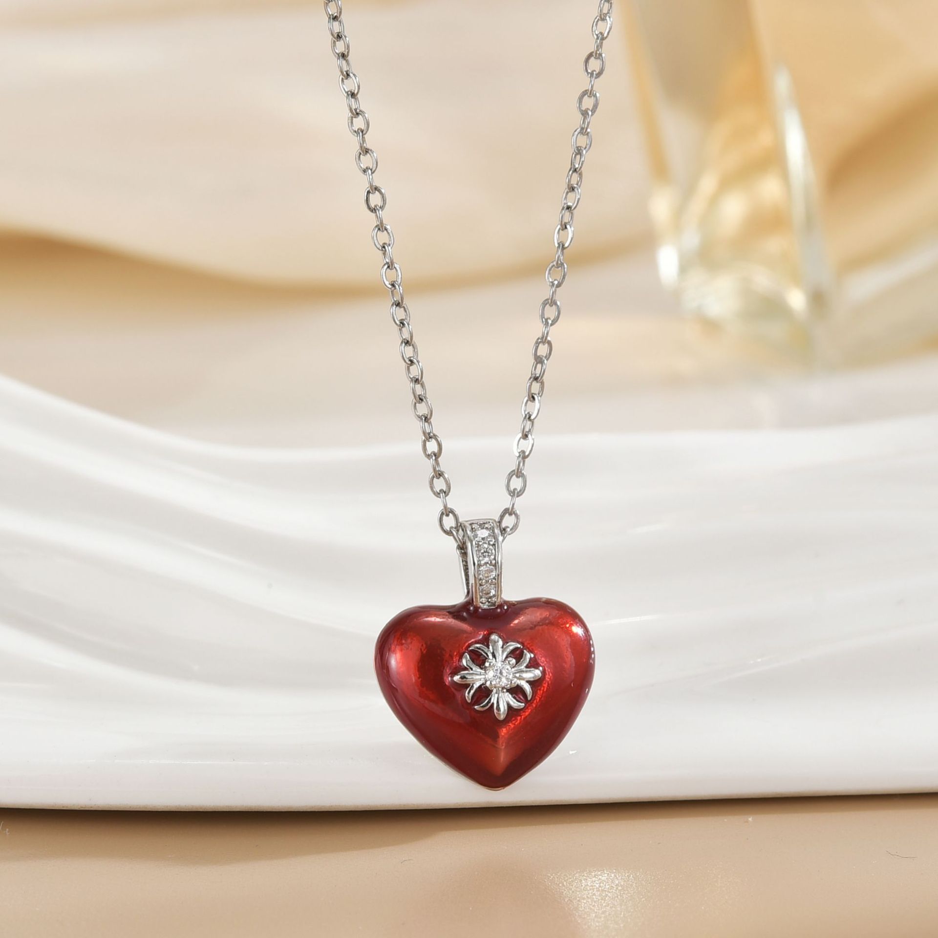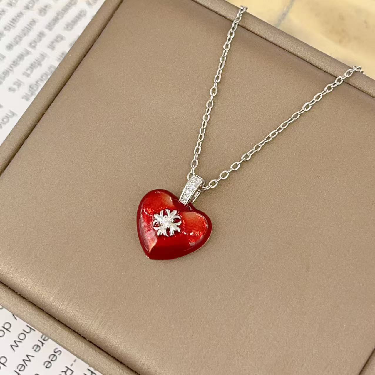 niche french love enamel pendant necklace light luxury temperament high-grade clavicle chain everyday style all-match necklace 中文版