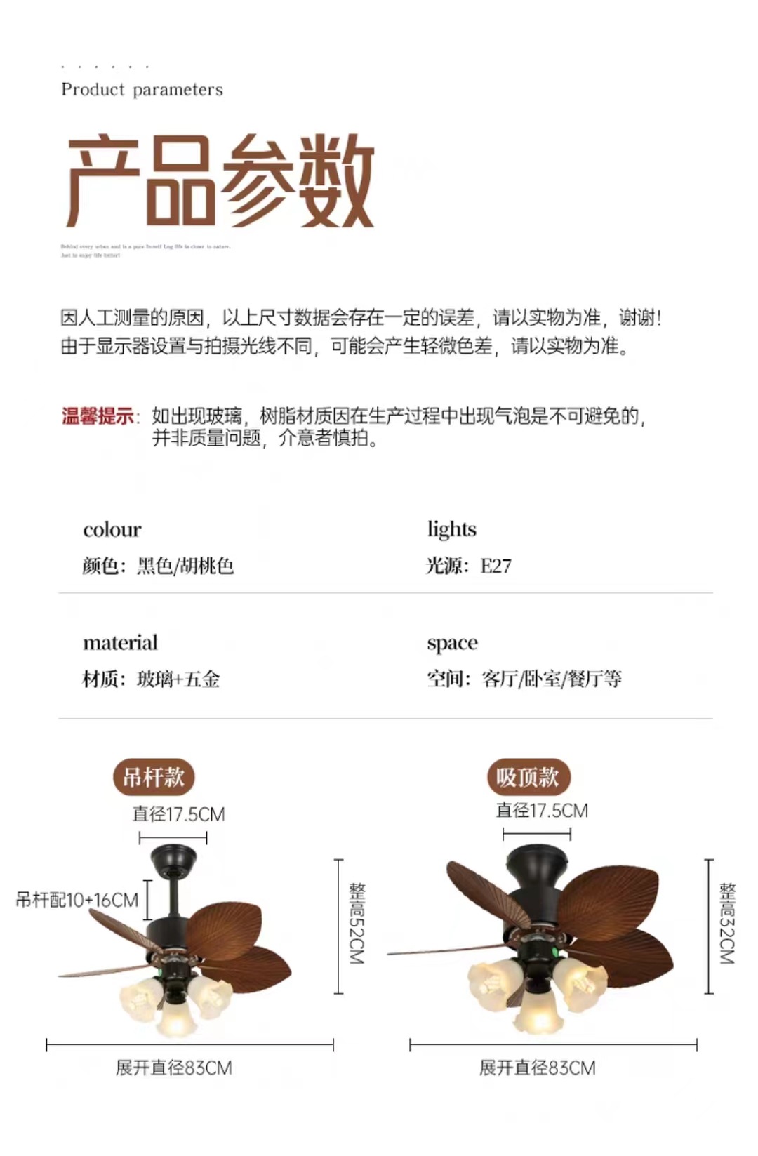 52-inch three-lamp caramel full spectrum dual control