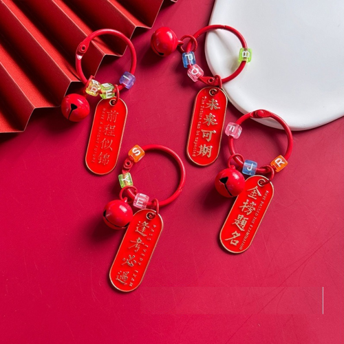 alloy greeting words red rope key chain creative diy letter beaded handbag pendant small gift wholesale 中文版