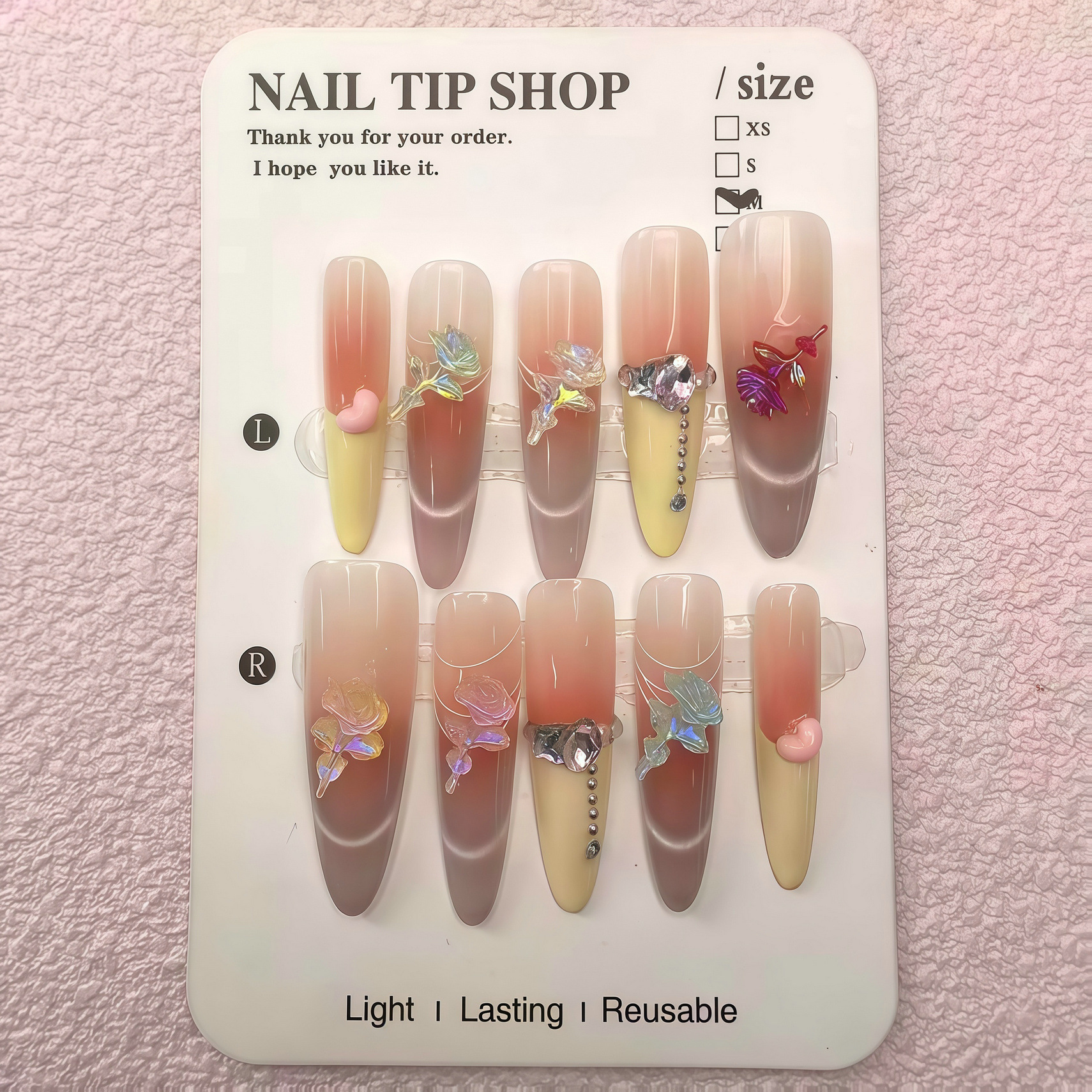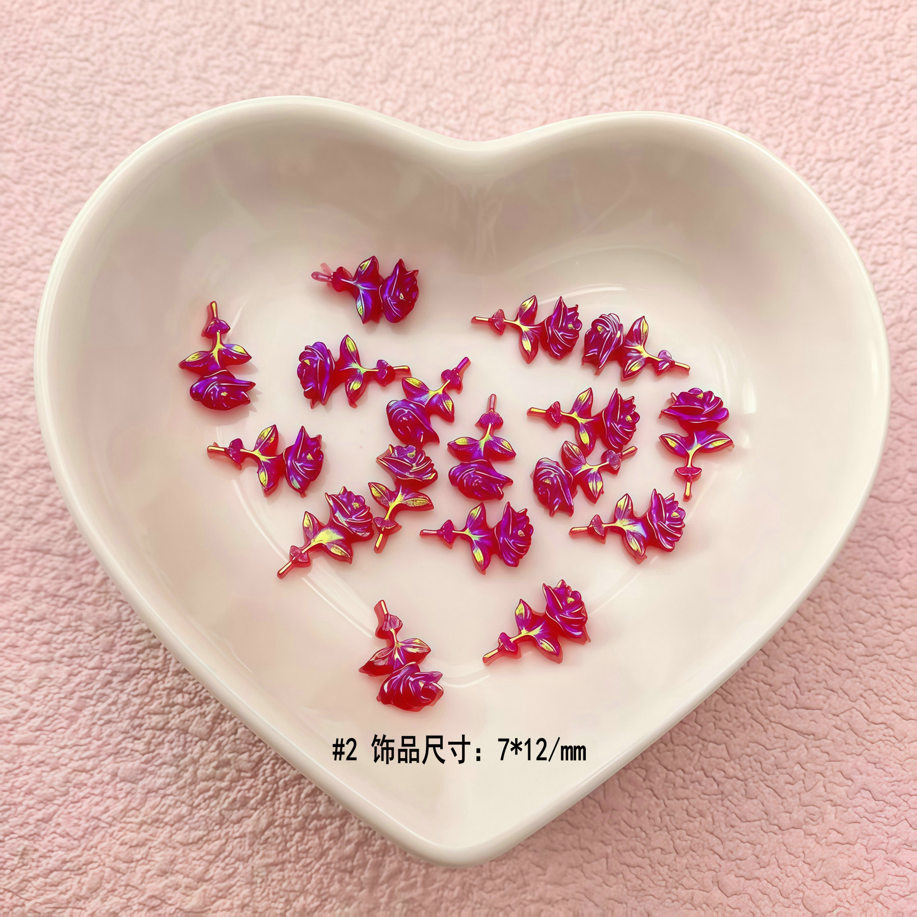 Rose as a classic design element, due to its romantic and elegant symbolic meaning, is widely used in resin nail jewelry and accessories in various industries. The following are its application scenarios and design features in different fields: