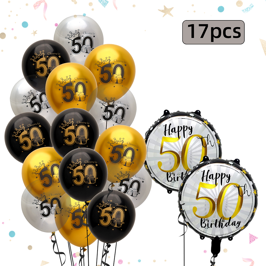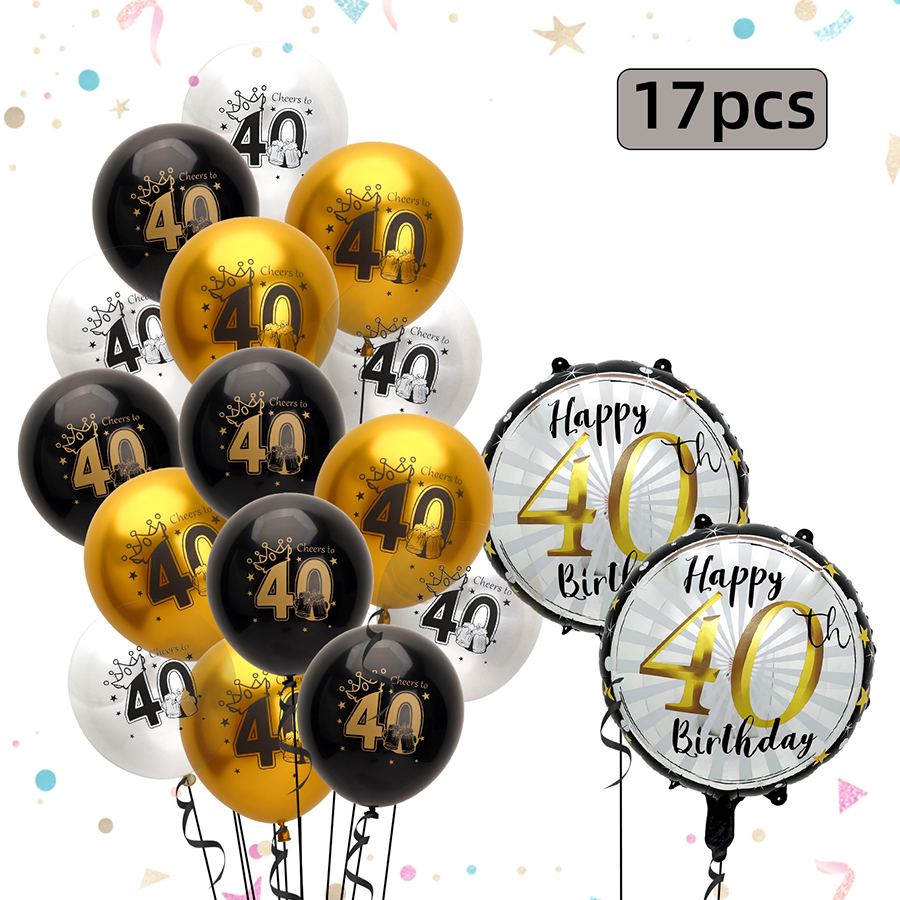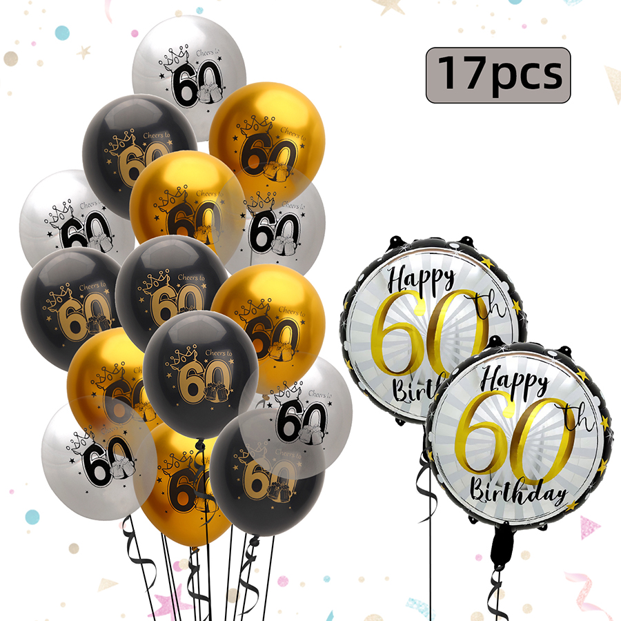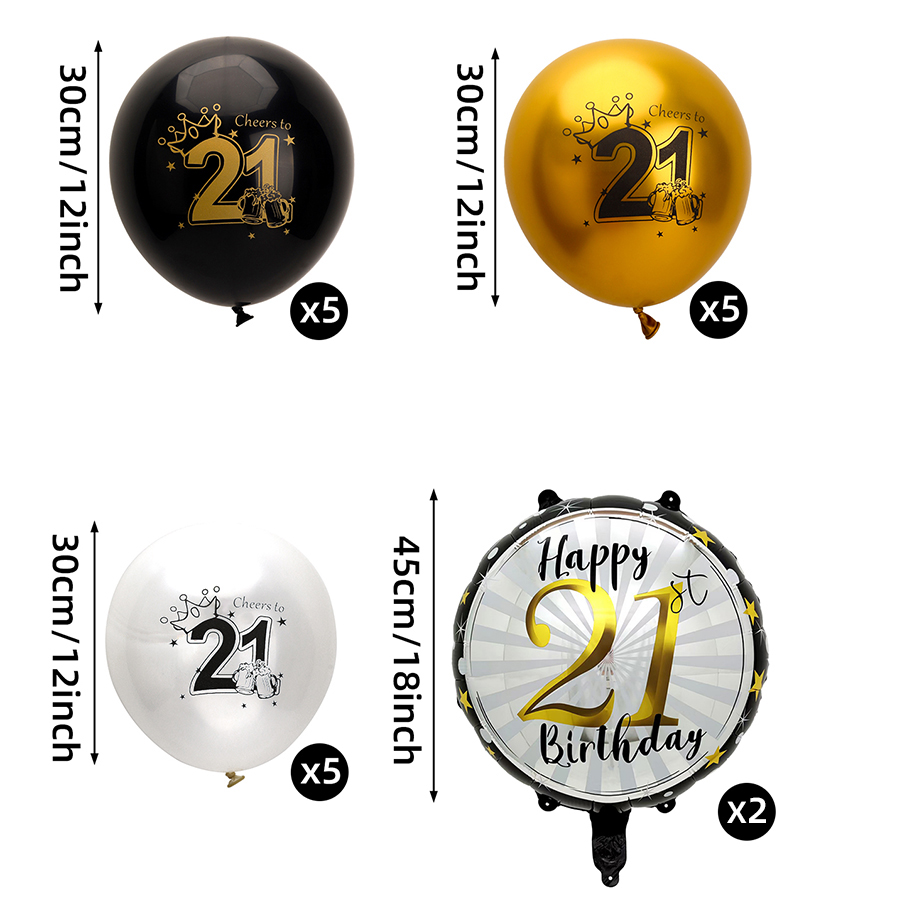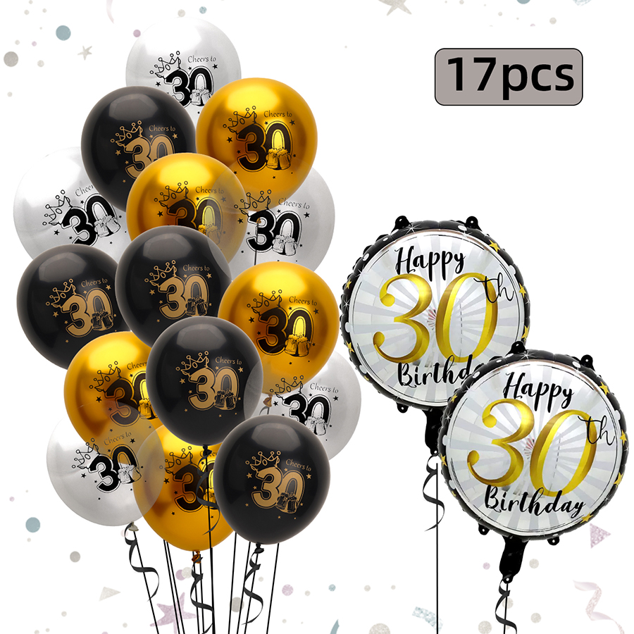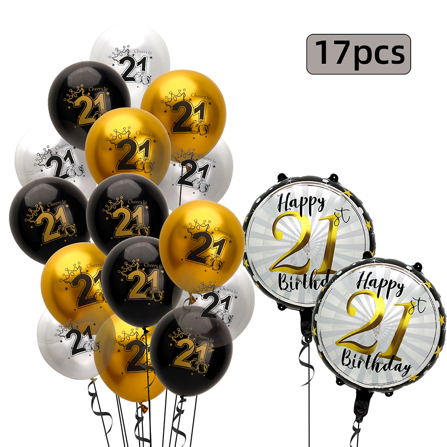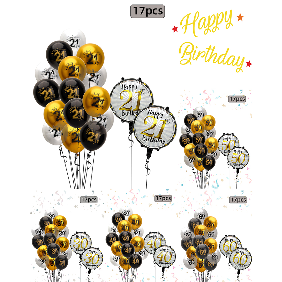 17 pcs 21 years old/30 years old/40 years old/50 years old/60 years old birthday balloon number rubber balloons + aluminum coating ball 中文版