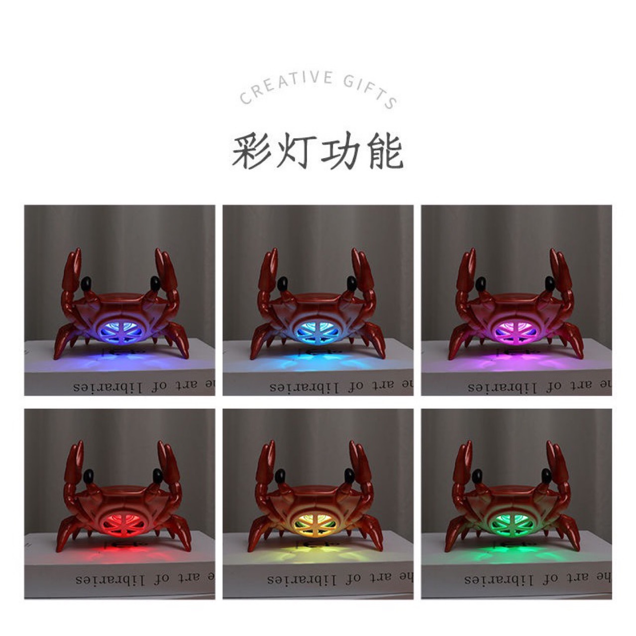 Cellphone holder crab speaker with RGB lights and subwoofer