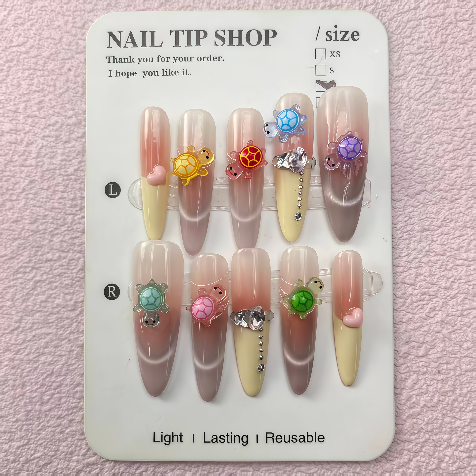 A Chinese nail art accessory supplier (Yiwu Beiling Accessories) received inquiries from European and American customers, hoping to purchase a batch of turtle-themed resin nail art decals/3D accessories, which will be used in nail salon and DIY nail art markets.
