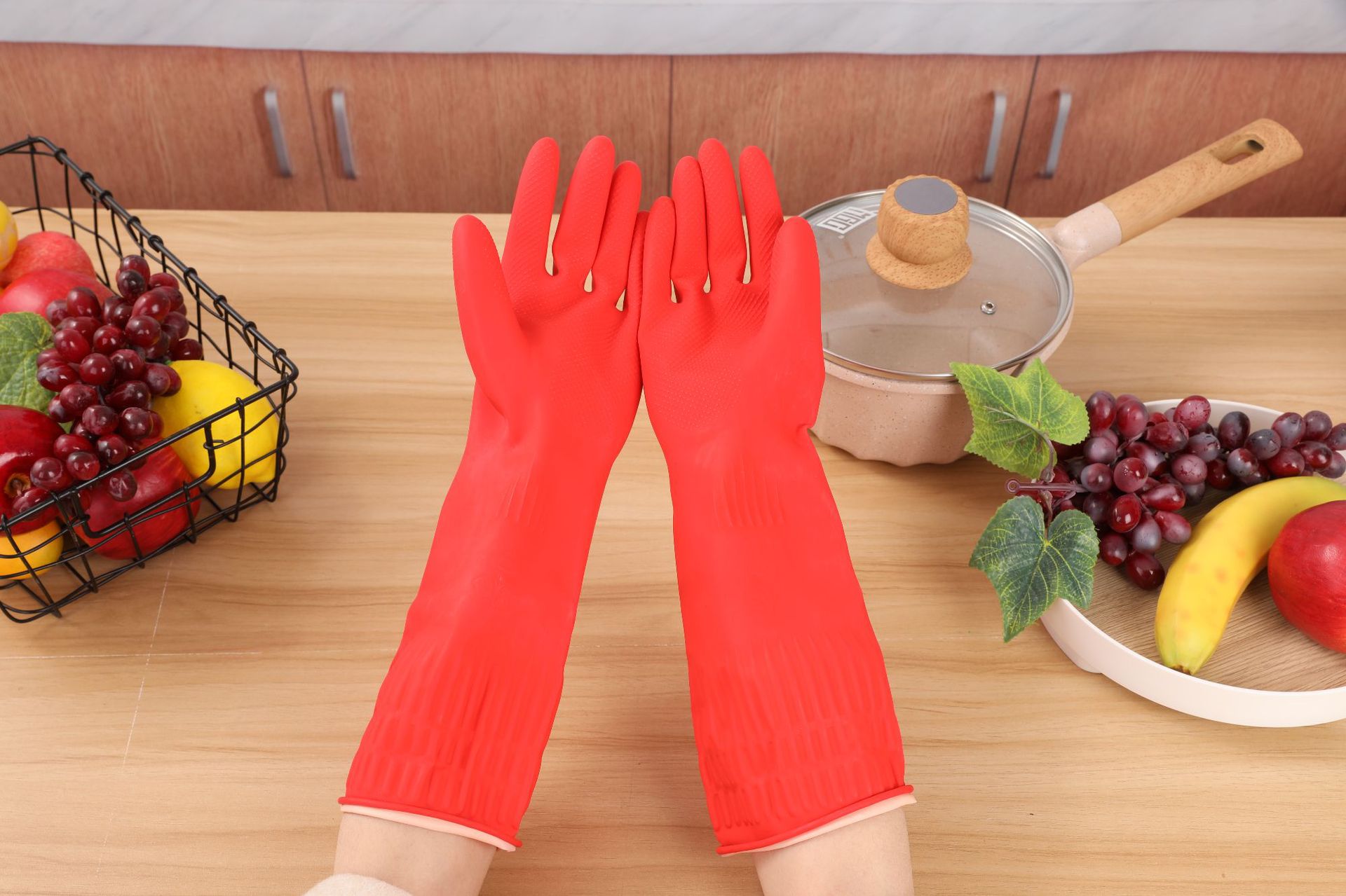 Household gloves for men and women, with fur lining, extra long and thick, large size, durable, suitable for kitchen, washing clothes, winter water-resistant