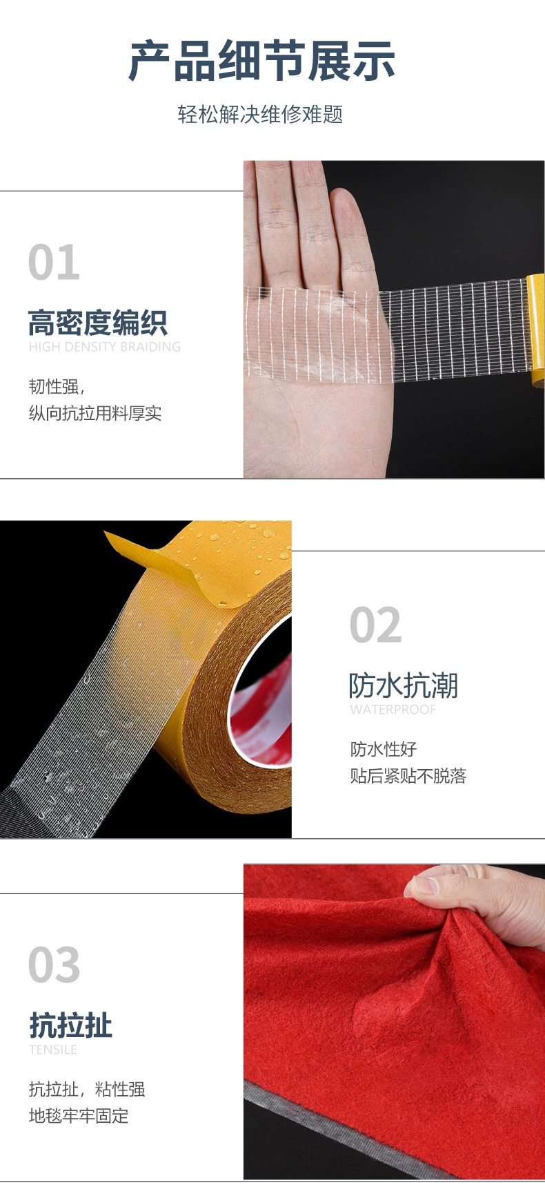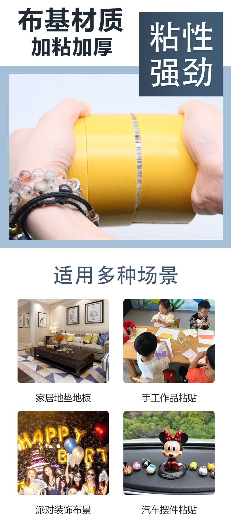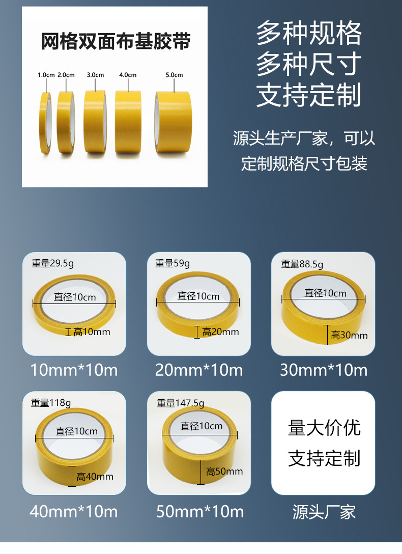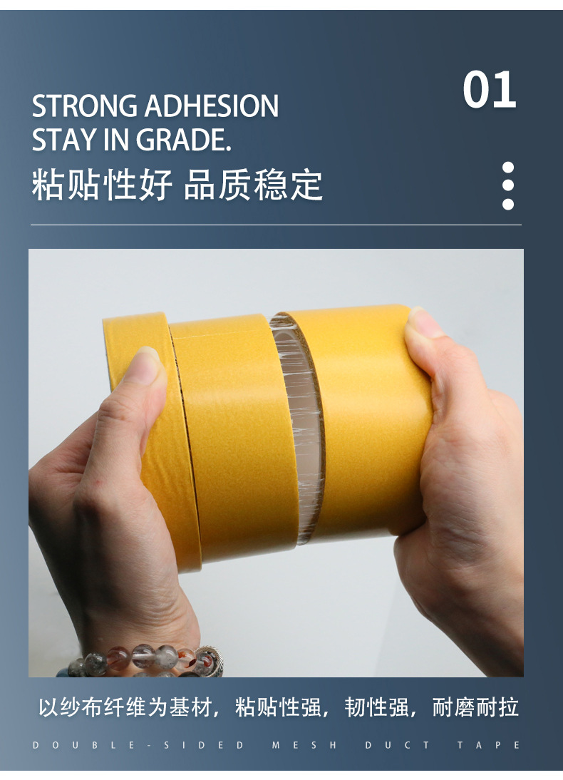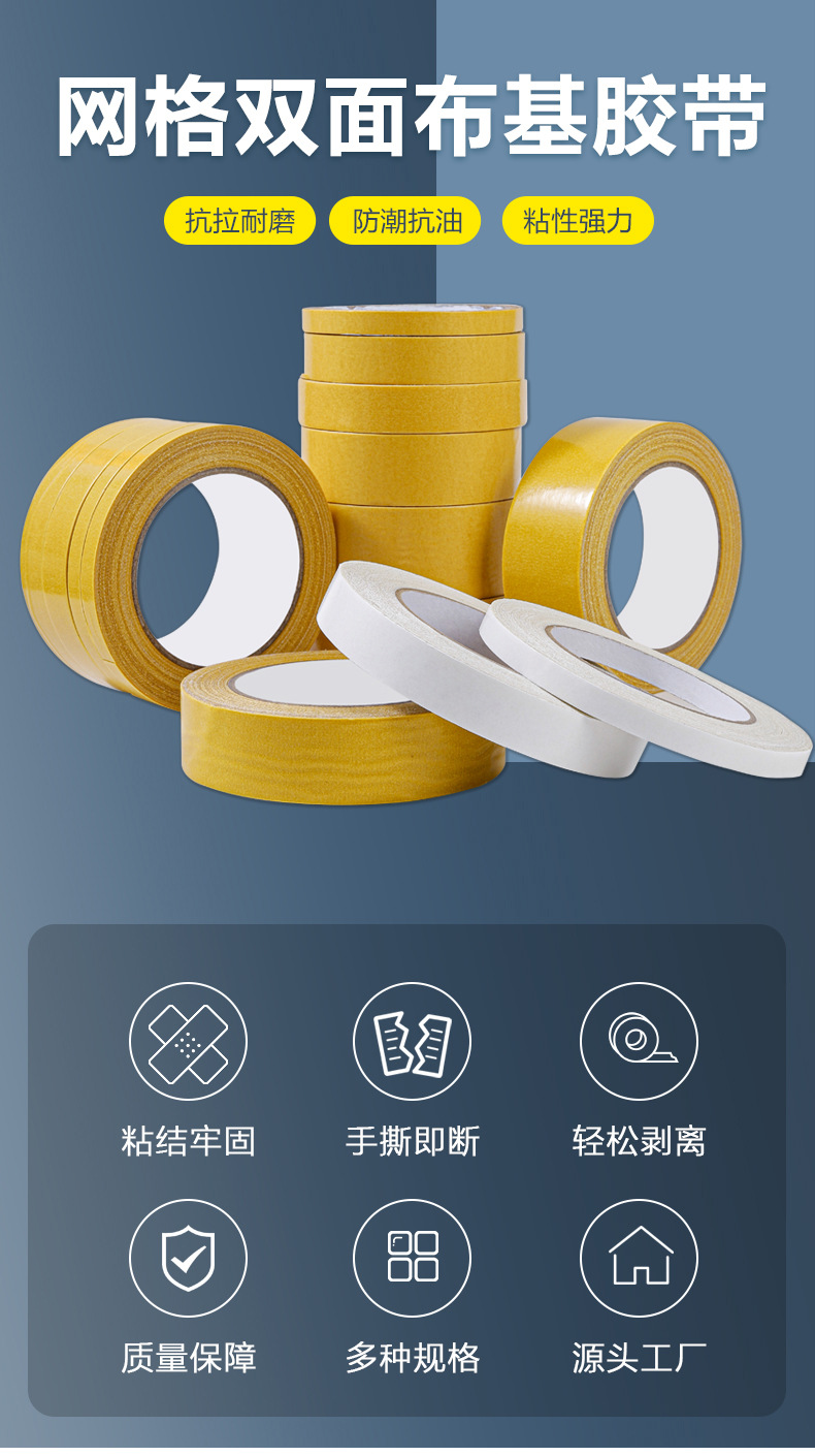 yellow double-sided cloth tape duct tape with high viscosity car home fixed wedding carpet fixed stitching grid duct tape