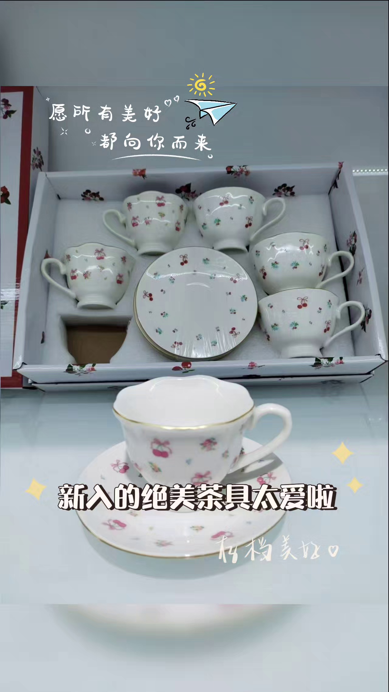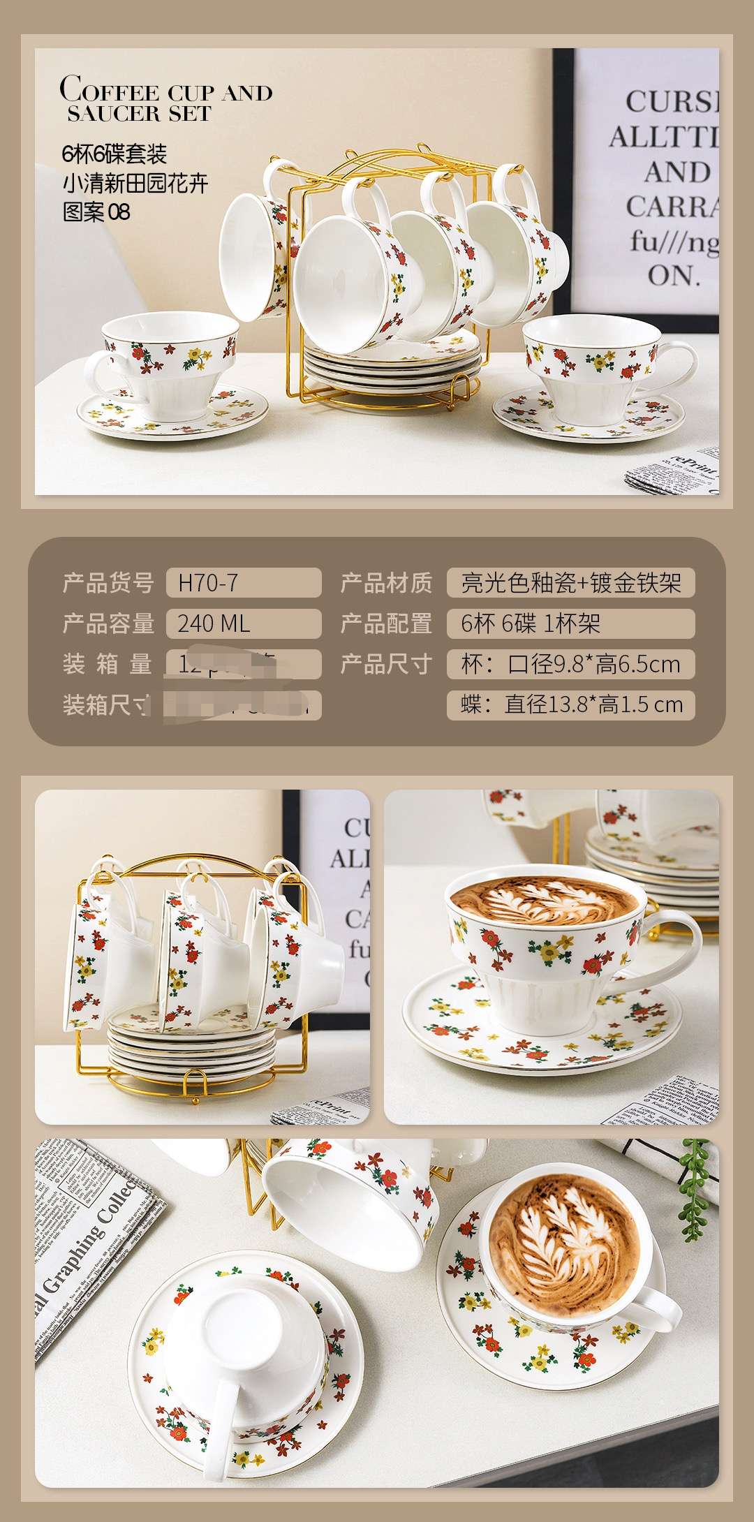 Jingdezhen ceramic fruit pattern gradient color flowers coffee set 6 cups 6 point coffee set cartoon