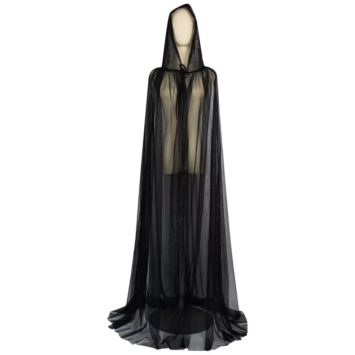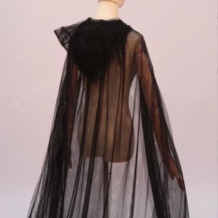 halloween single mesh bride halloween cloak soft mesh wedding cloak hooded witch mesh long cape bucket