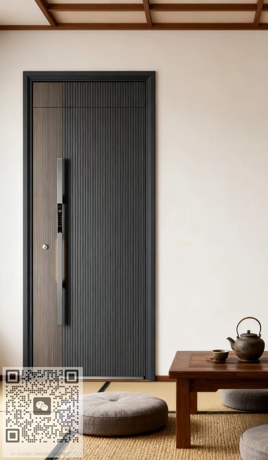Chinese-style thickened wood grain laminate with aluminum foil filling, standard with a 10-inch high-definition large screen, fluorocarbon paint with wood grain color matching, highlighting the high-end home decor aesthetics.