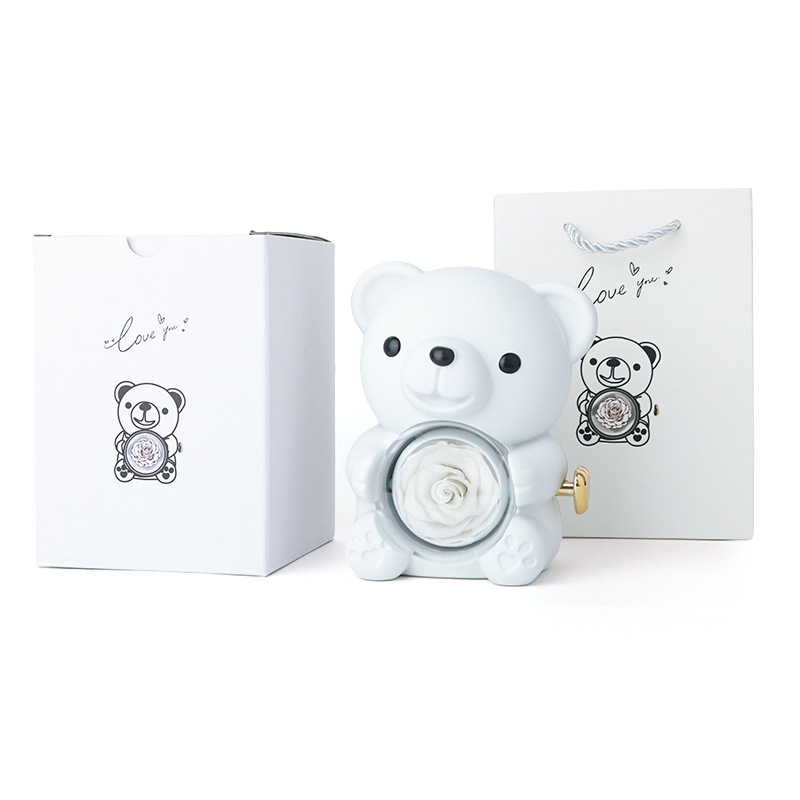 white preserved fresh flower; bear box (including flowers) + color box + handbag
