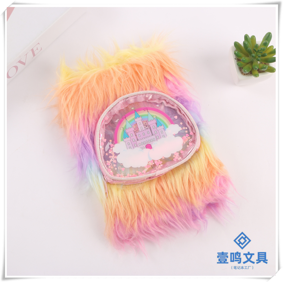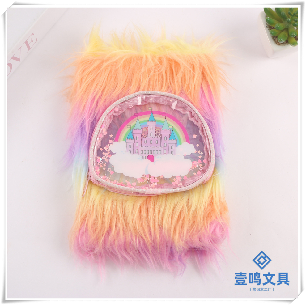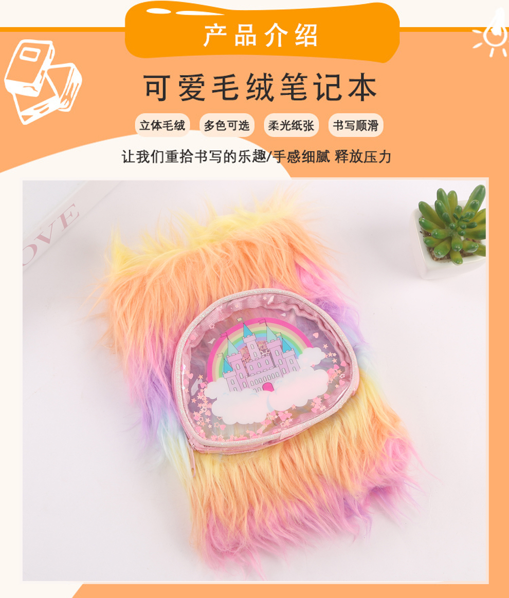 Product Name: Rainbow Castle Pattern Fuzzy Notebook with Japanese and Korean Style, Cute Cartoon, Girlie Heart, Direct Factory Sale