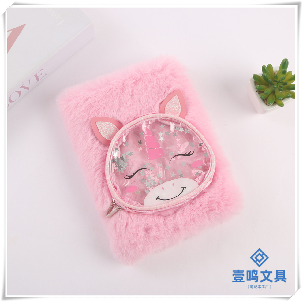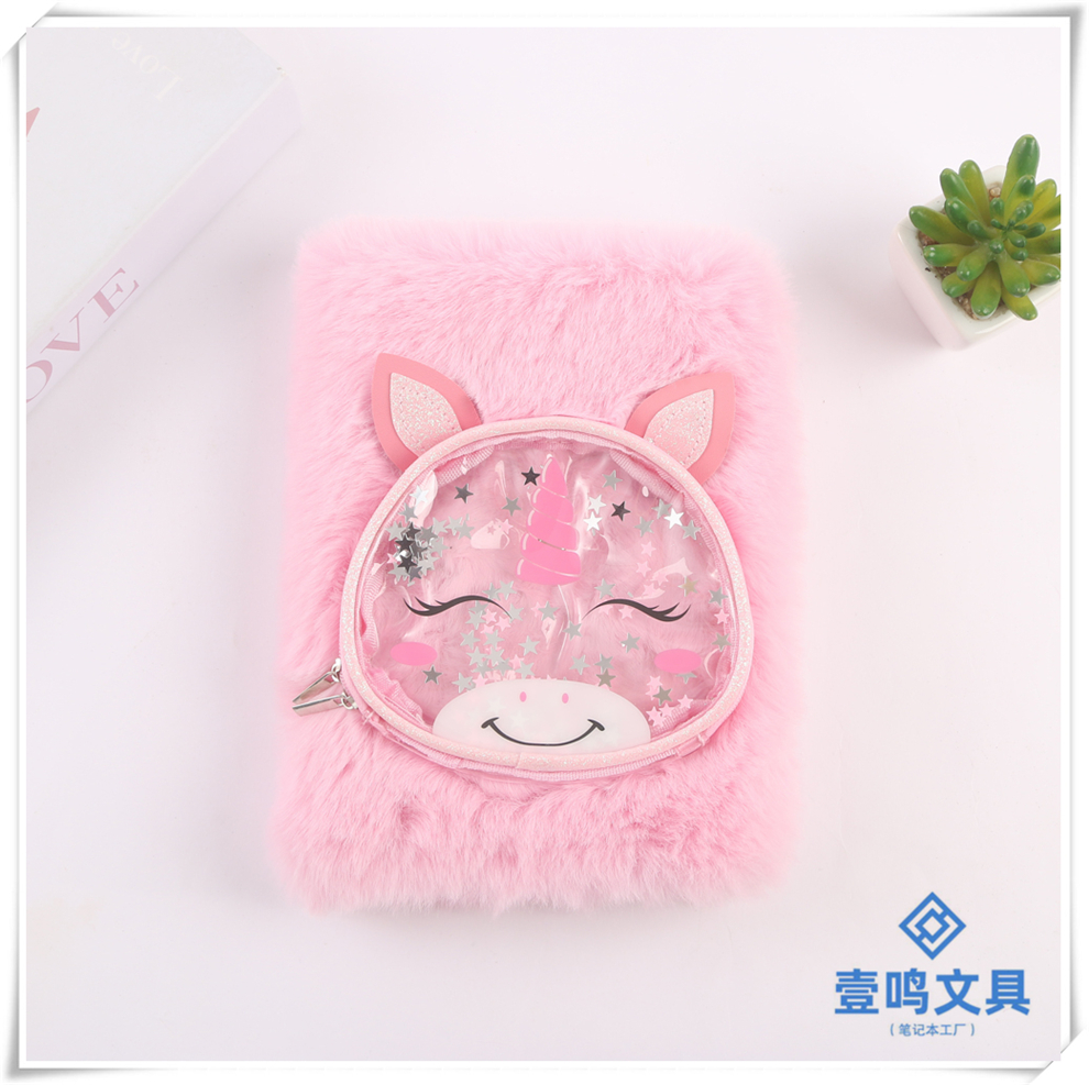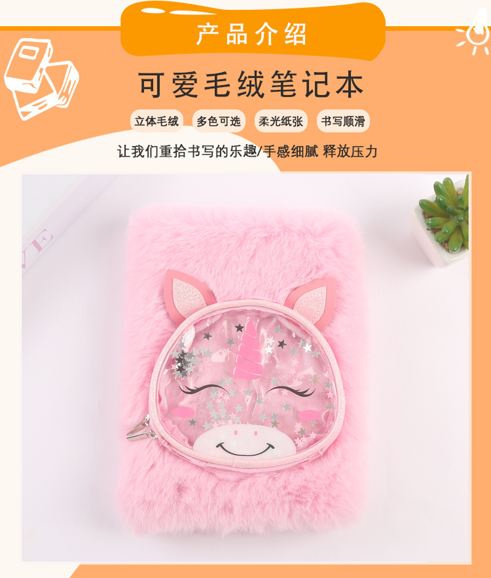 Product Name: Pink Children's Fuzzy Diary - Cartoon Animal Notebook - Girls Student Notebook - Kindergarten Gift