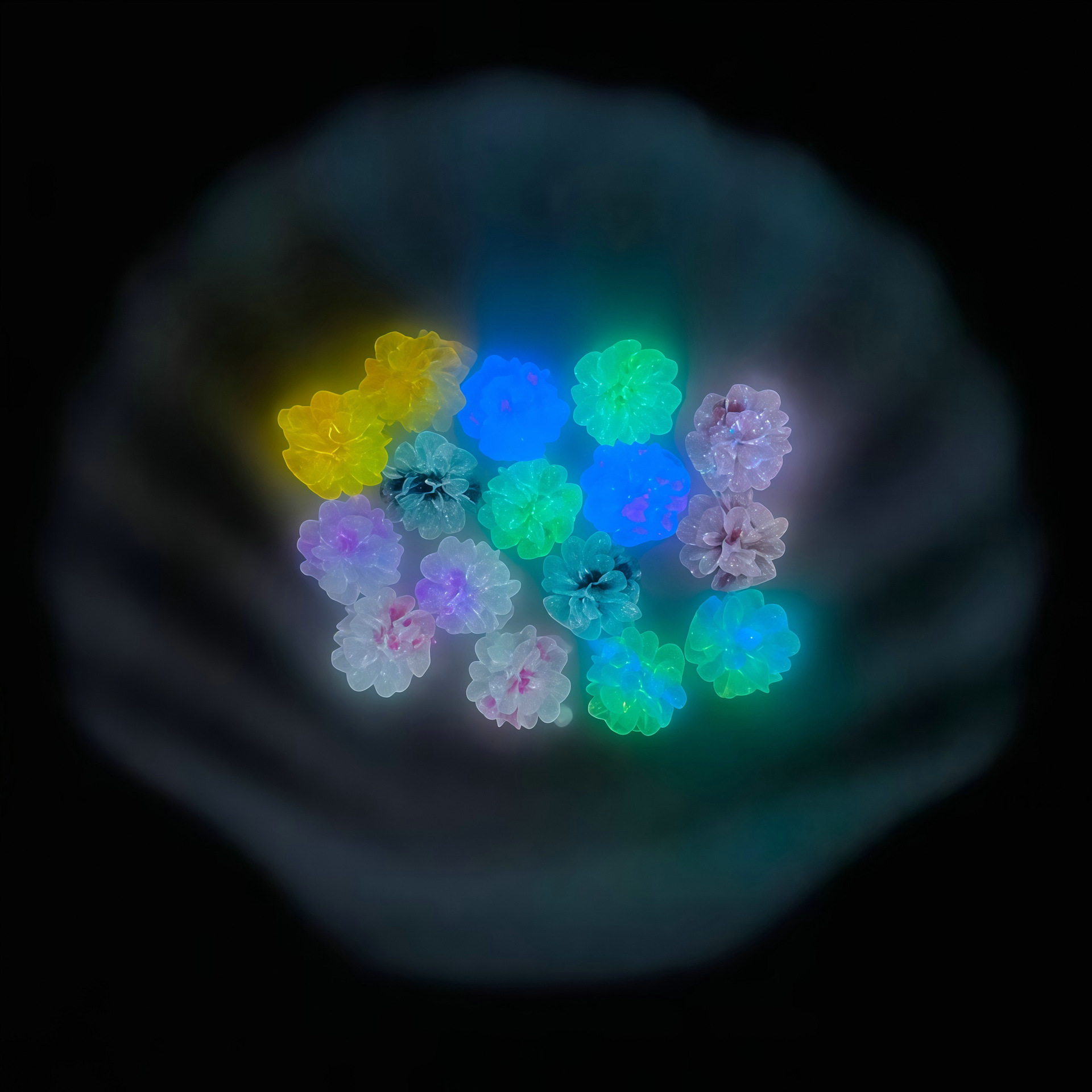 Black Technology Elements: Thermo-chromic Resin Flowers (Change Color with Heat), Glowing Flowers at Night, etc.