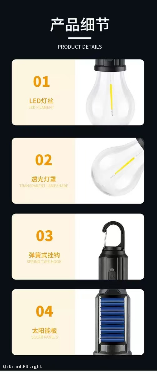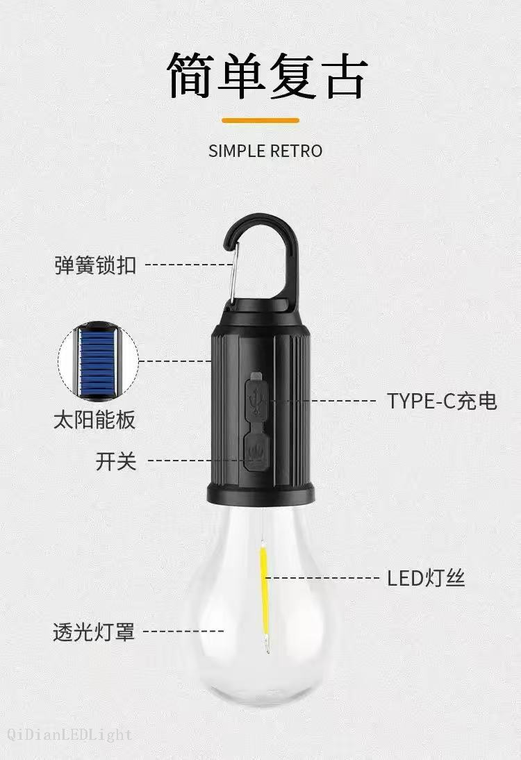 solar charging tungsten lamp camping lantern outdoor lighting bulb portable sphere-shaped tent camping lamp 中文版