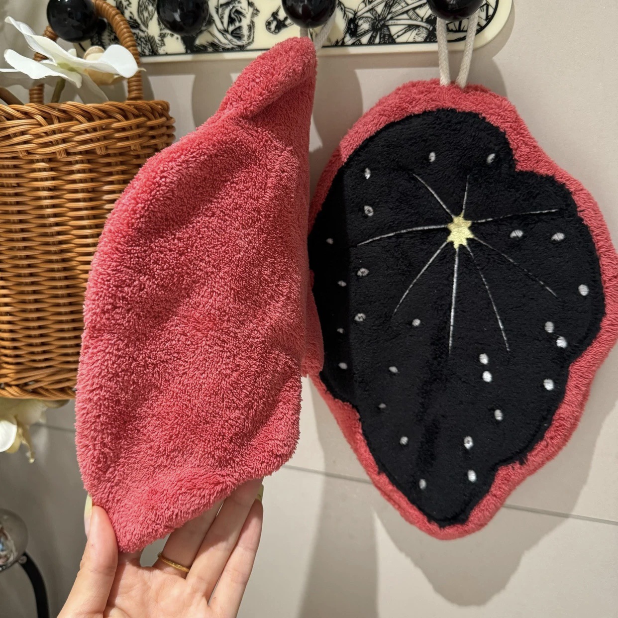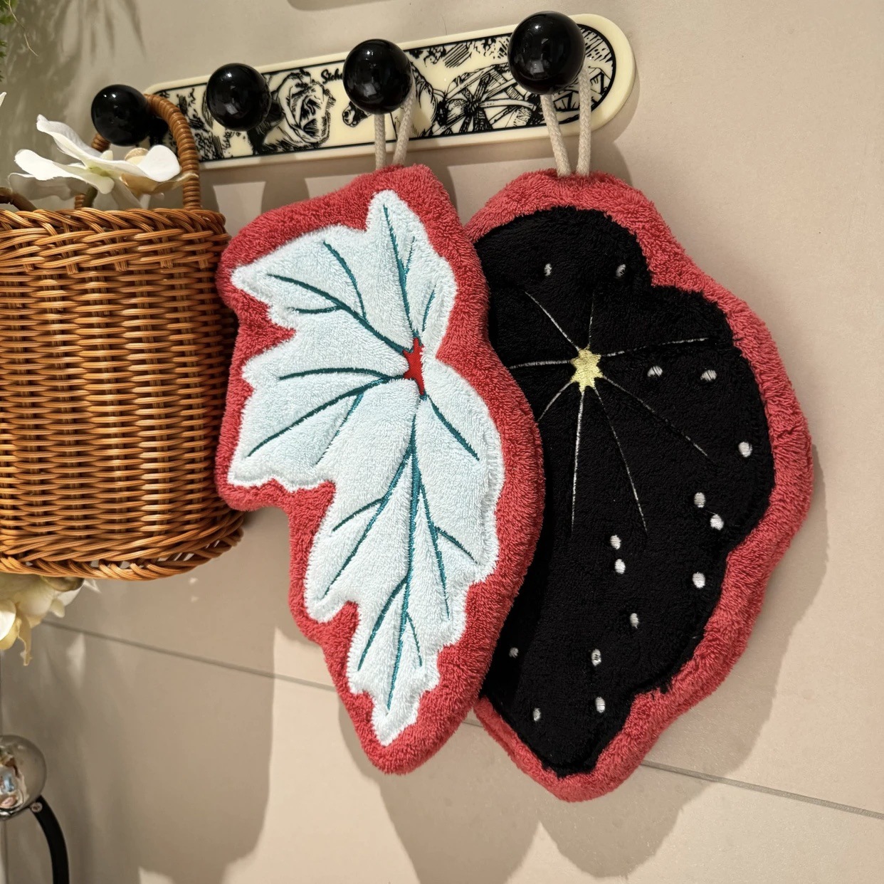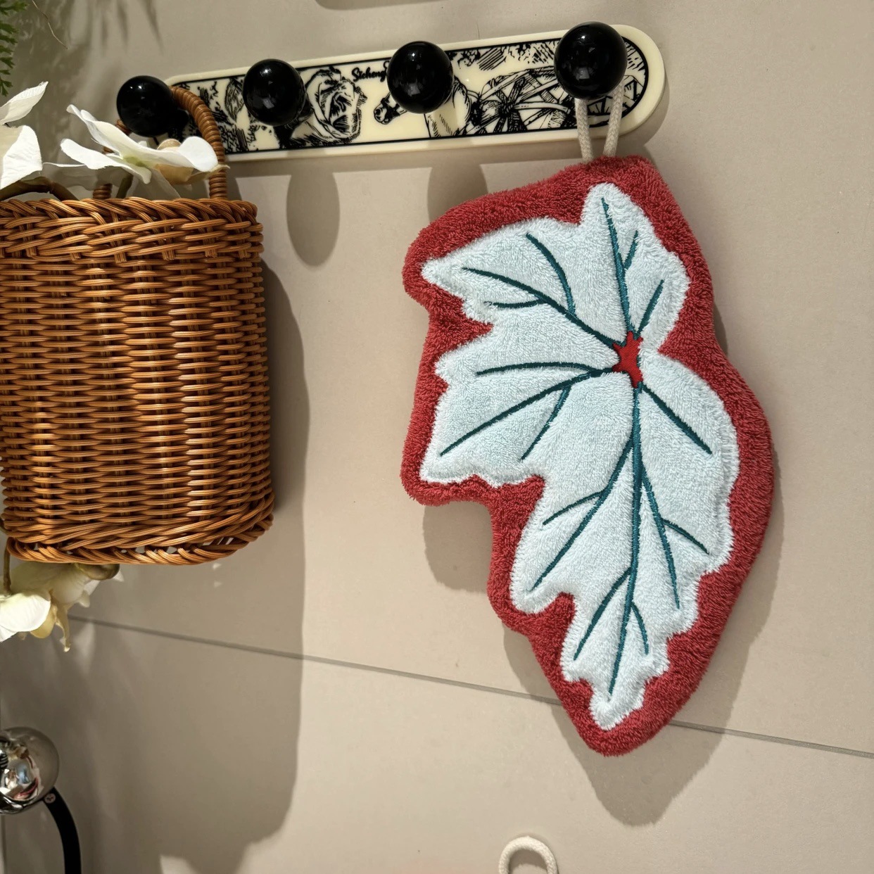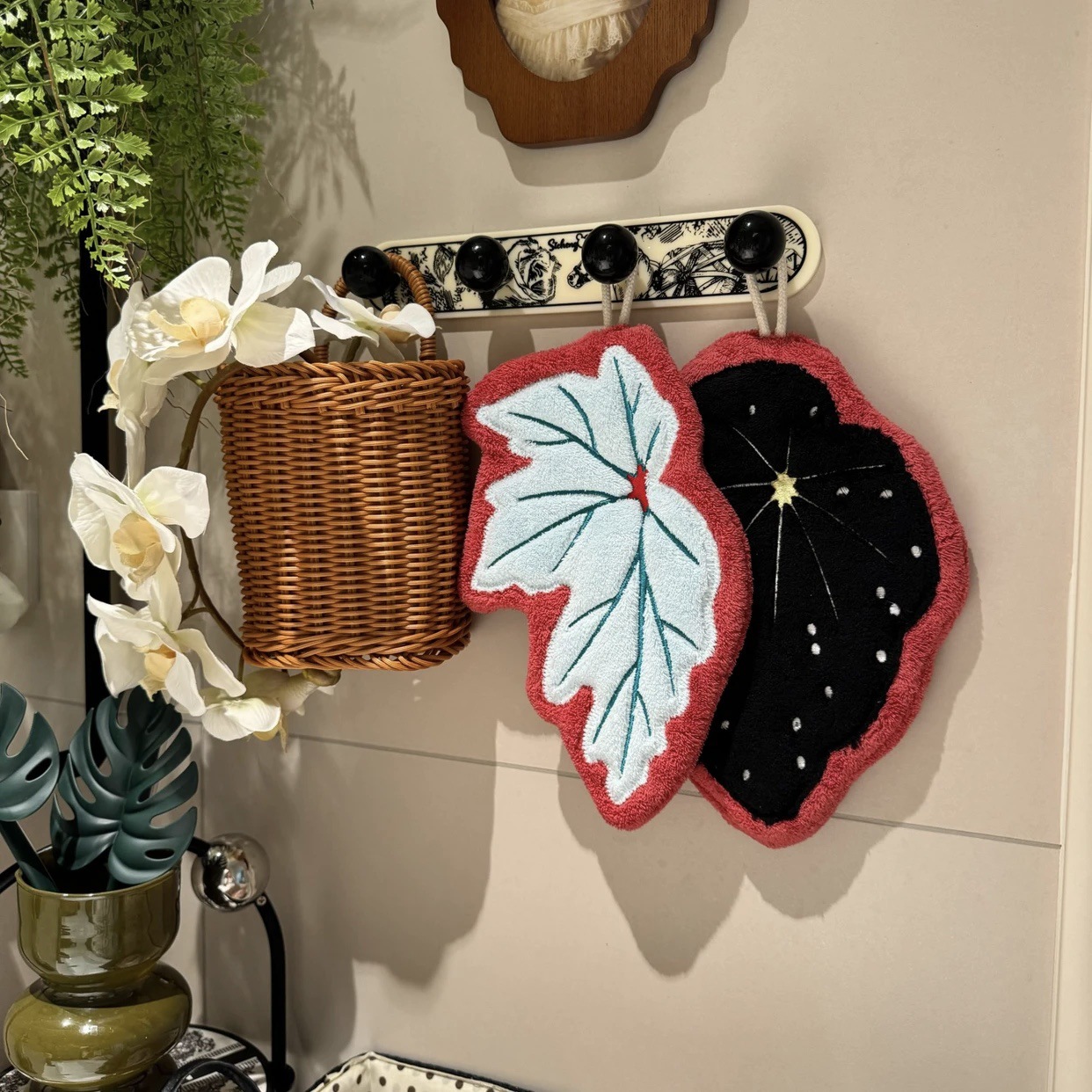 simulation begonia leaf hanging hand towel absorbent soft bathroom kitchen towel plant decoration