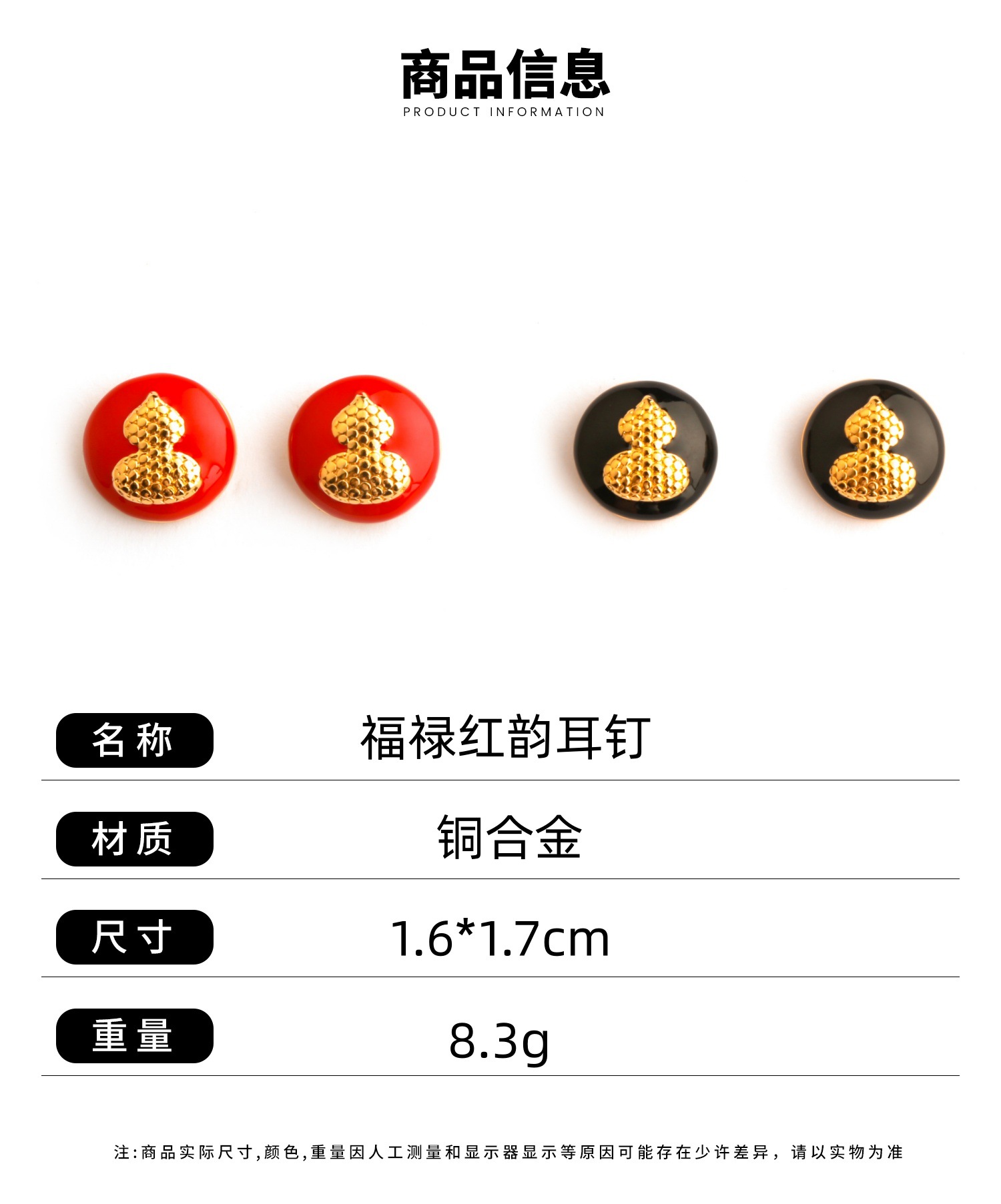 red enamel stud earrings