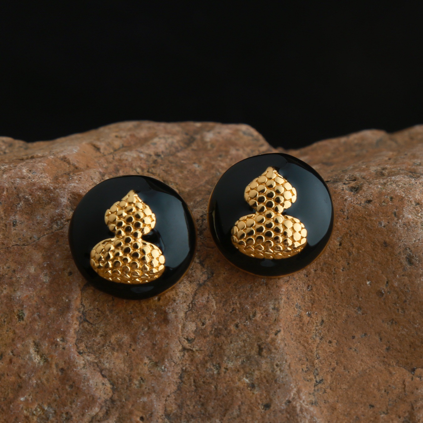 black enamel stud earrings