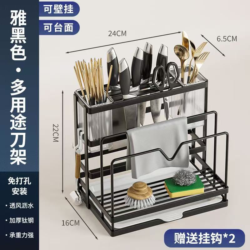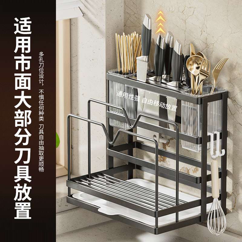 kitchen knife holder multi-functional storage rack home pot lid knives chopsticks bucket wall-mounted stainless steel cutting board storage rack h
