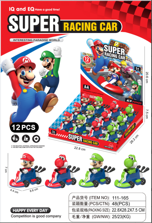 e-commerce hot-selling product super mario cartoon car 2-color mixed children's toys boys and girls educational toys 中文版