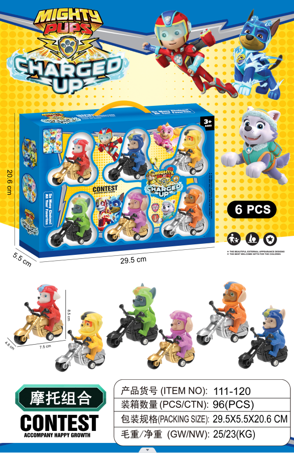 e-commerce children's popular dog pull back motorcycle 6 dog set cartoon children's fashion toys 中文版