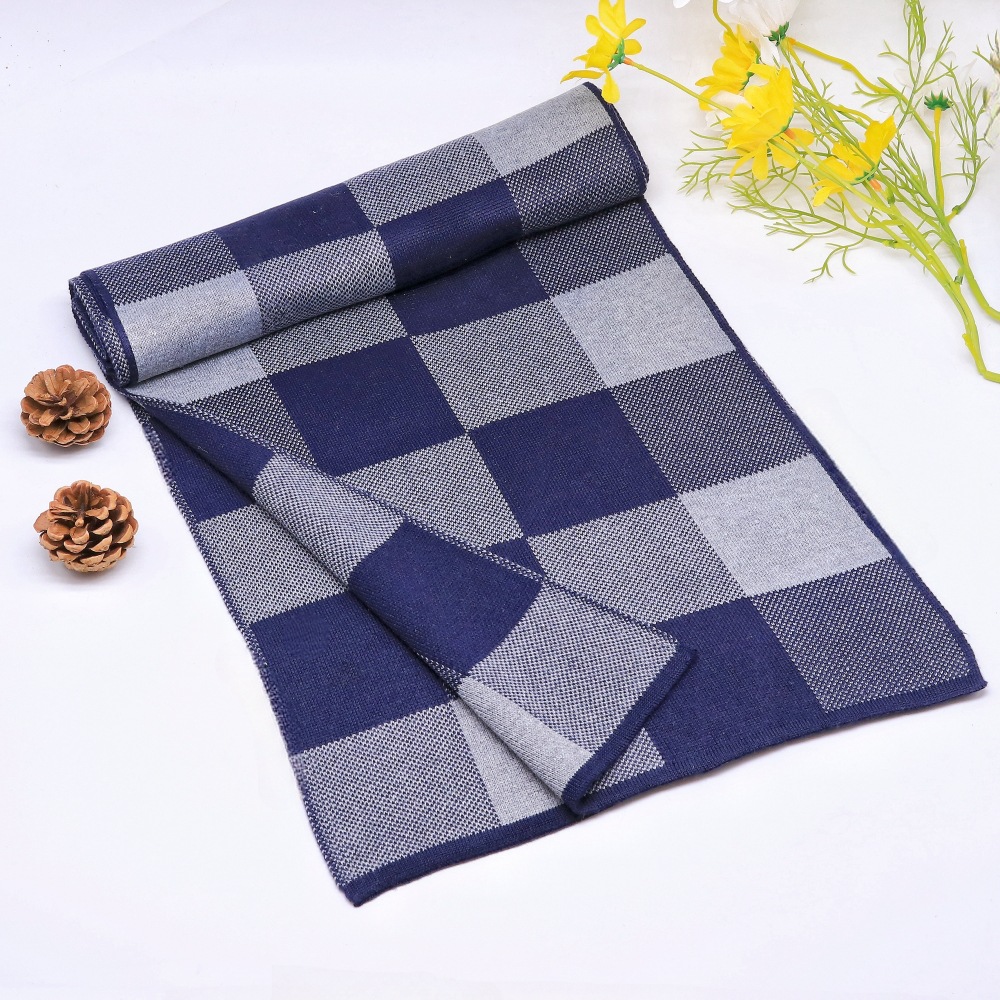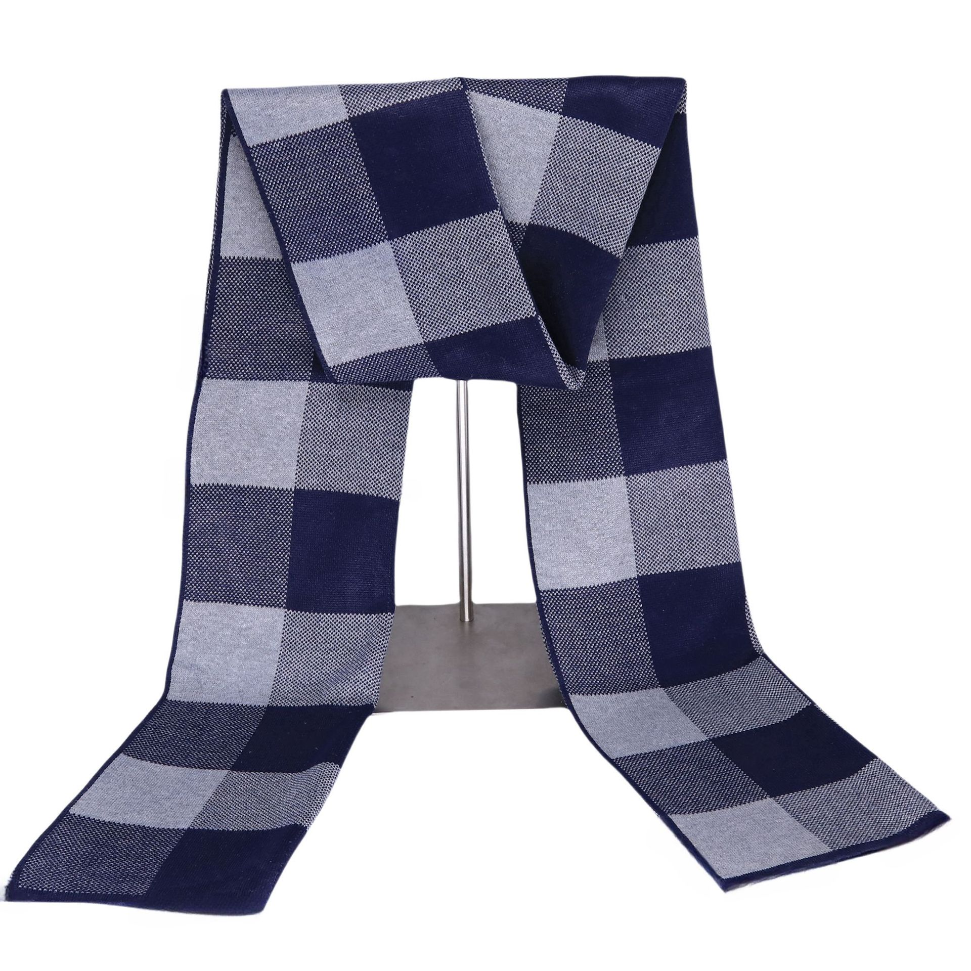 men's wool scarf autumn and winter korean plaid warm scarf men's wool knitted scarf new gift box wholesale 中文版
