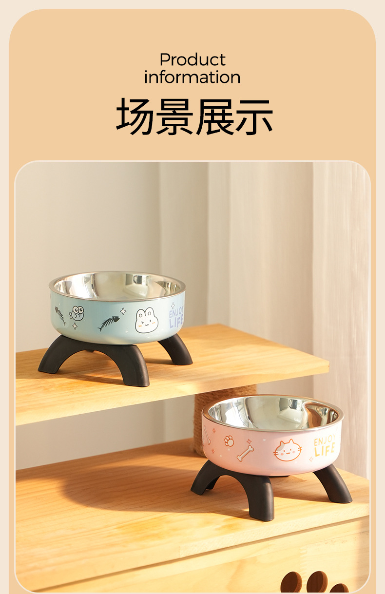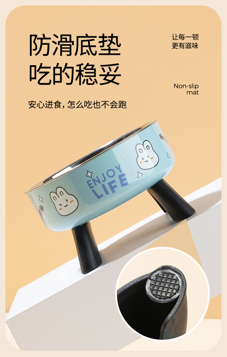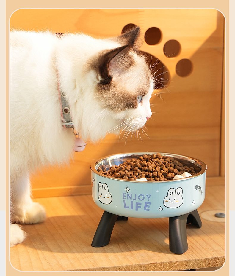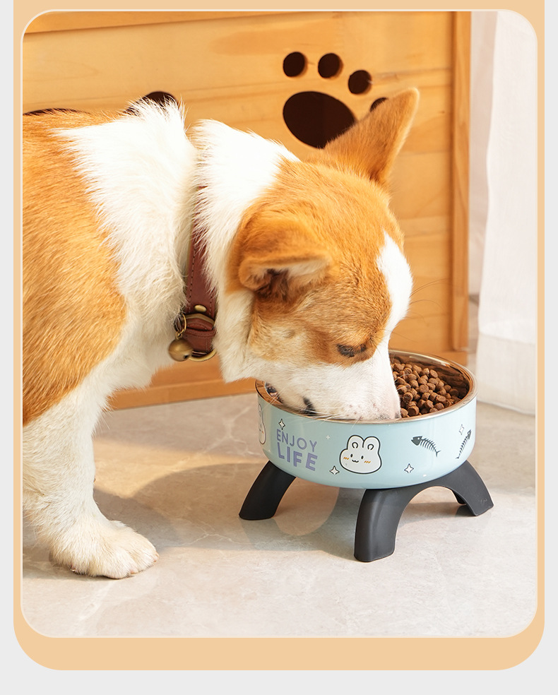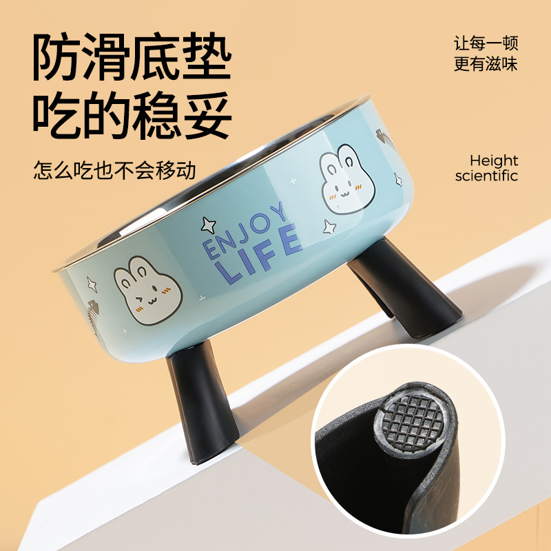 pet bowl dog bowl non-slip anti-tumble bowl neck tall bowl removable easy-to-clean stainless steel new