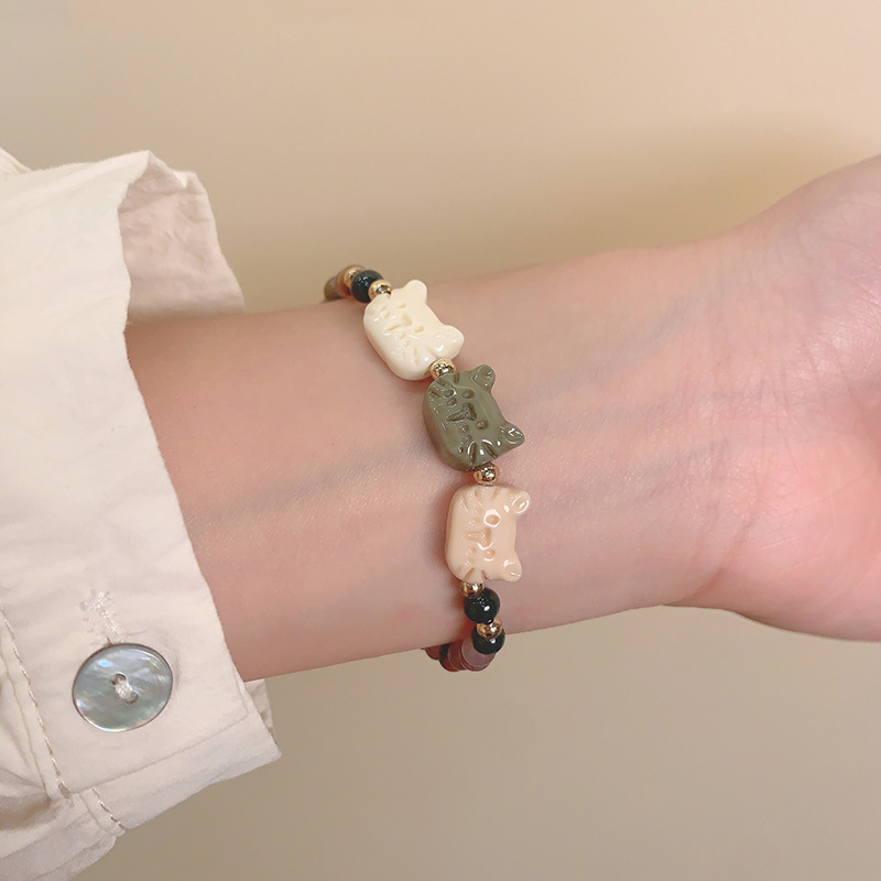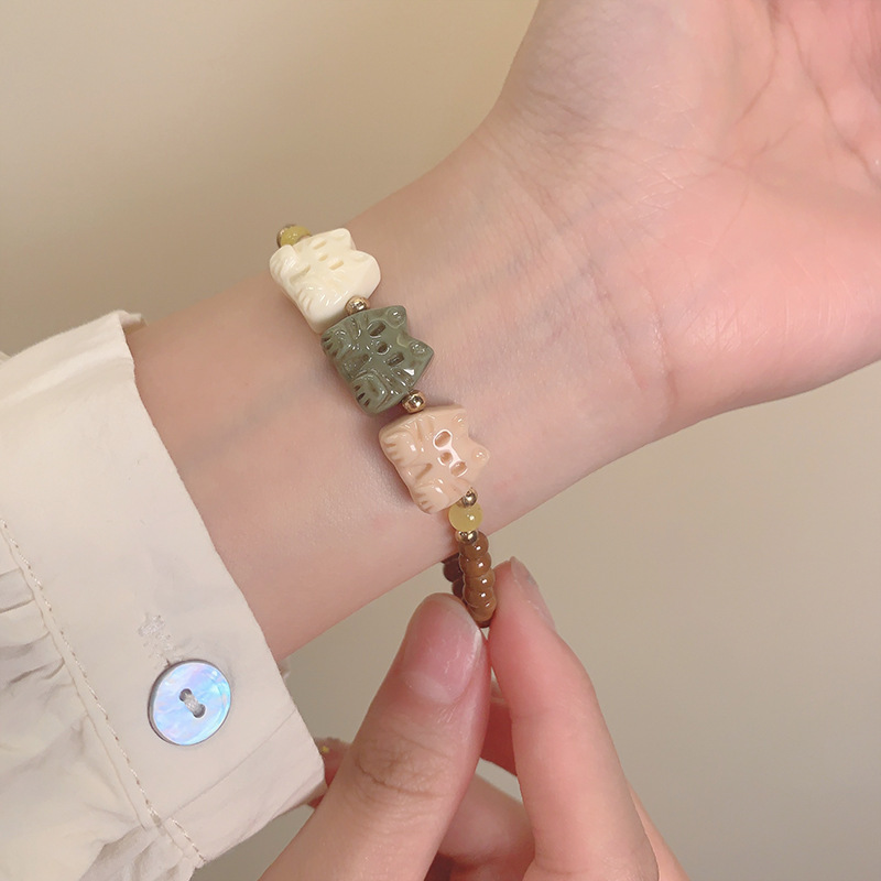 three-color surprise cat beaded bracelet