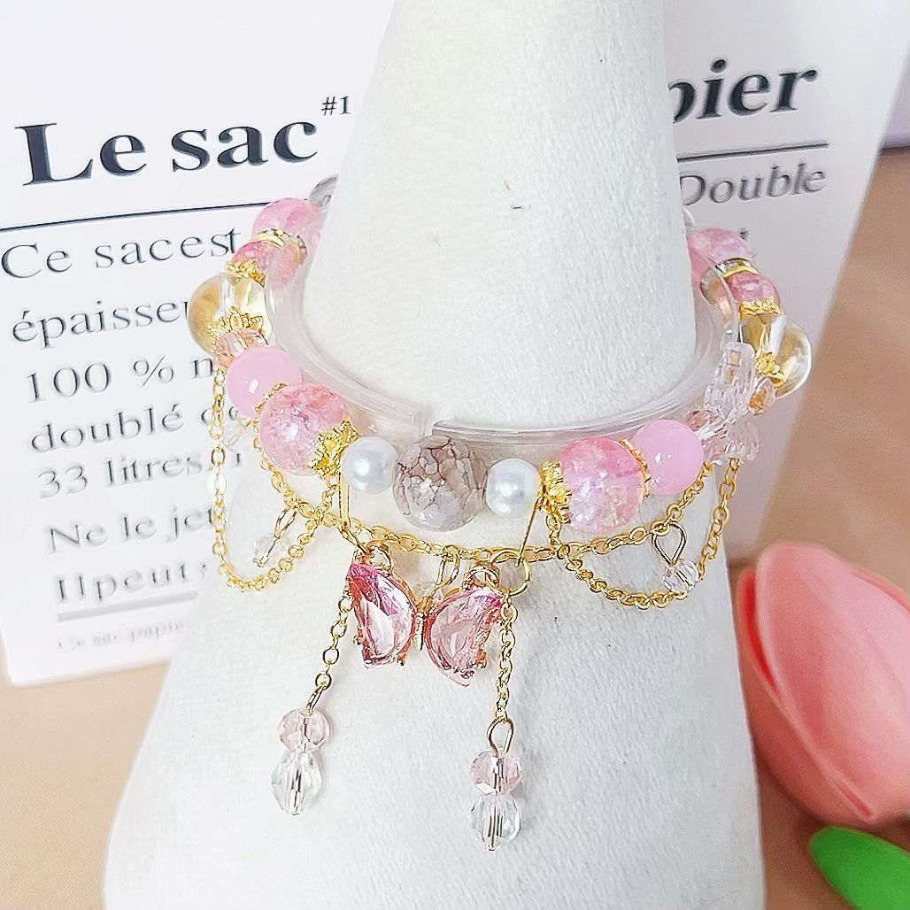 s103 peach blossom source pink beads butterfly bracelet 1