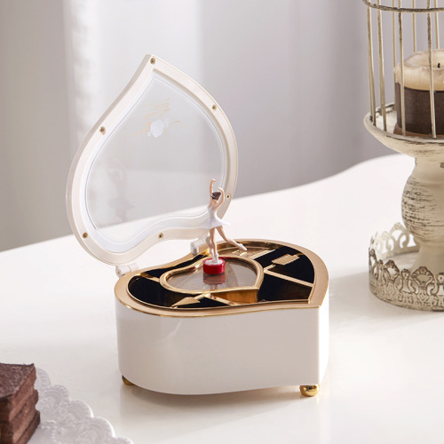 Warm Tip:Twist the bottom "rotary knob" of the music box, then open the music box, and the music will play immediately. The ballet girl will move and rotate with the music, and the music is "To Alice".