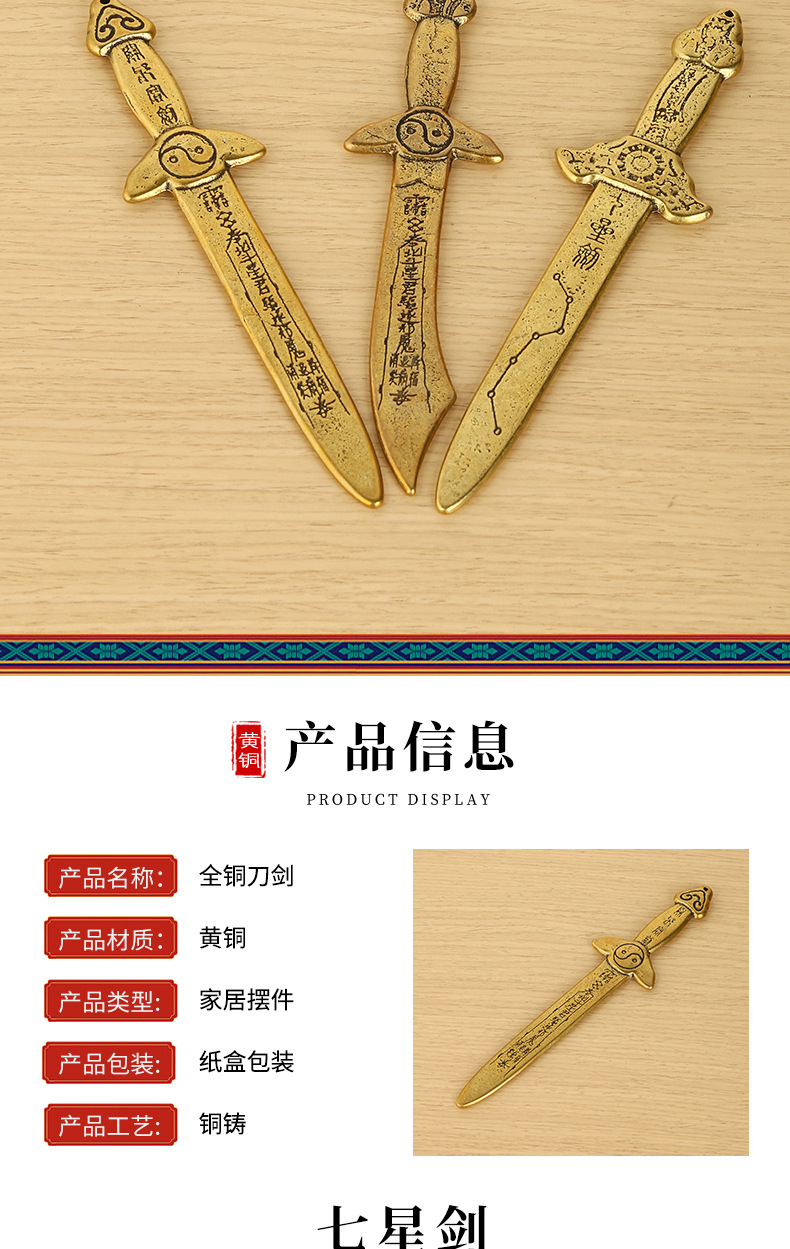 19.5cm long thickened brass seven star sword