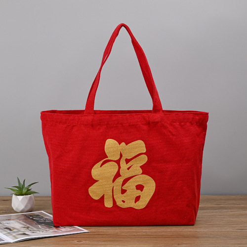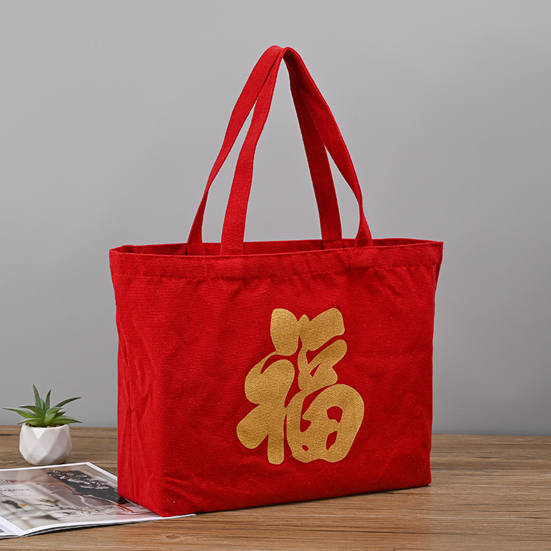 factory festive red bag printing golden high-end canvas bag canvas bag printable logo for holiday activities
