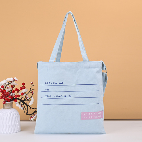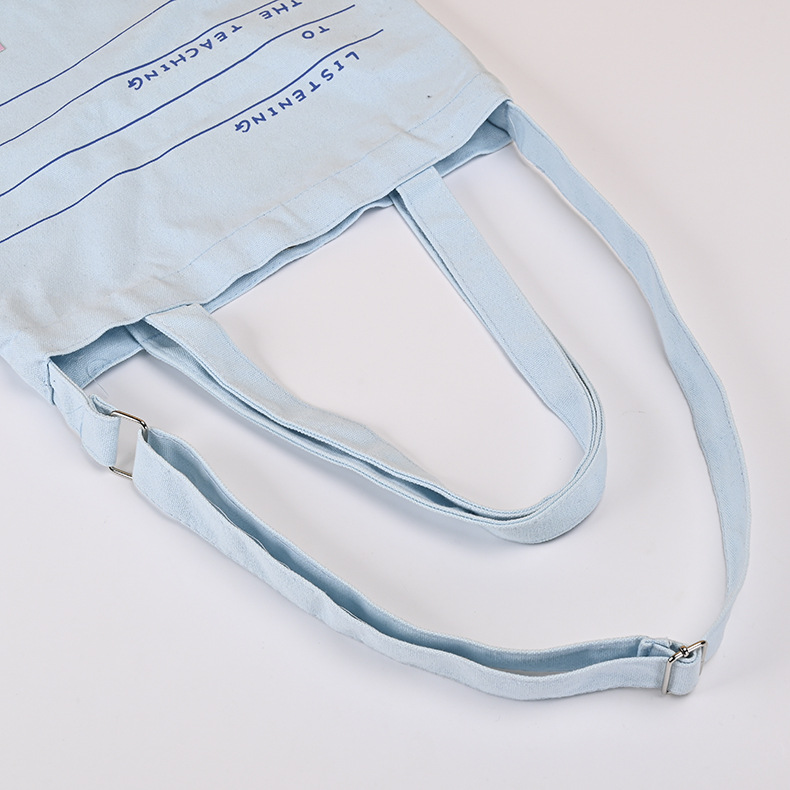 xiaoqing new blue student canvas bag large-capacity shopping shoulder tote bag with hidden hook advertising portable canvas bag