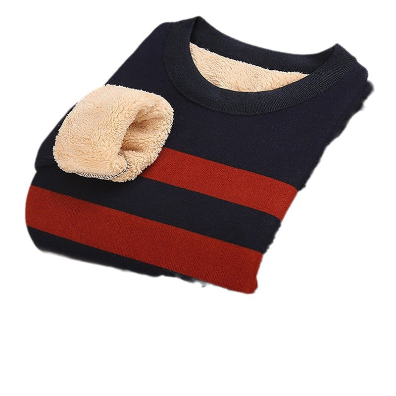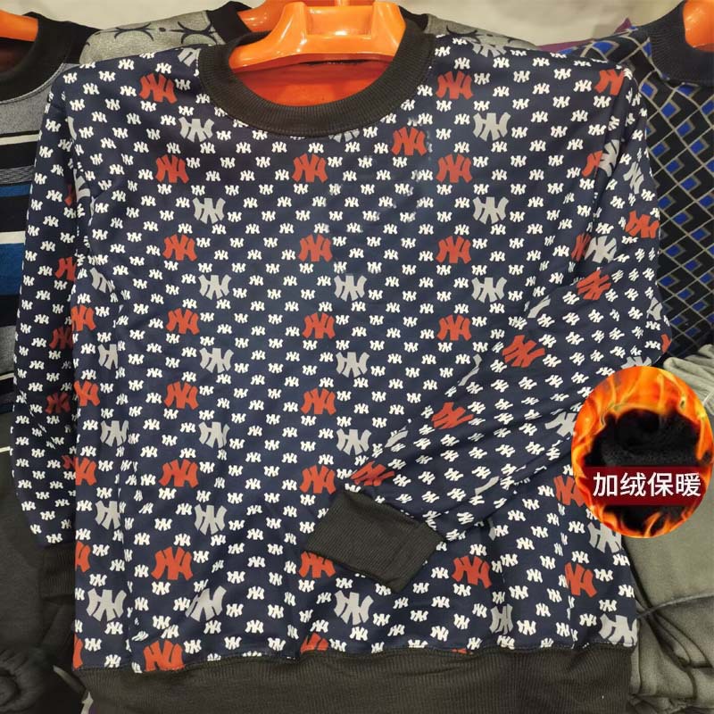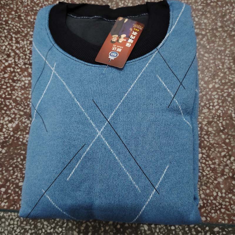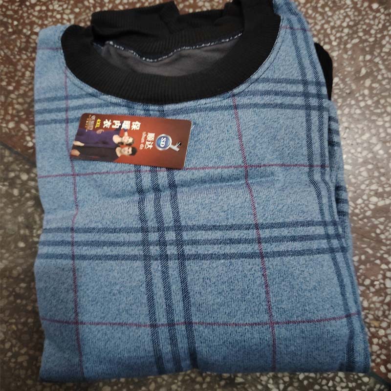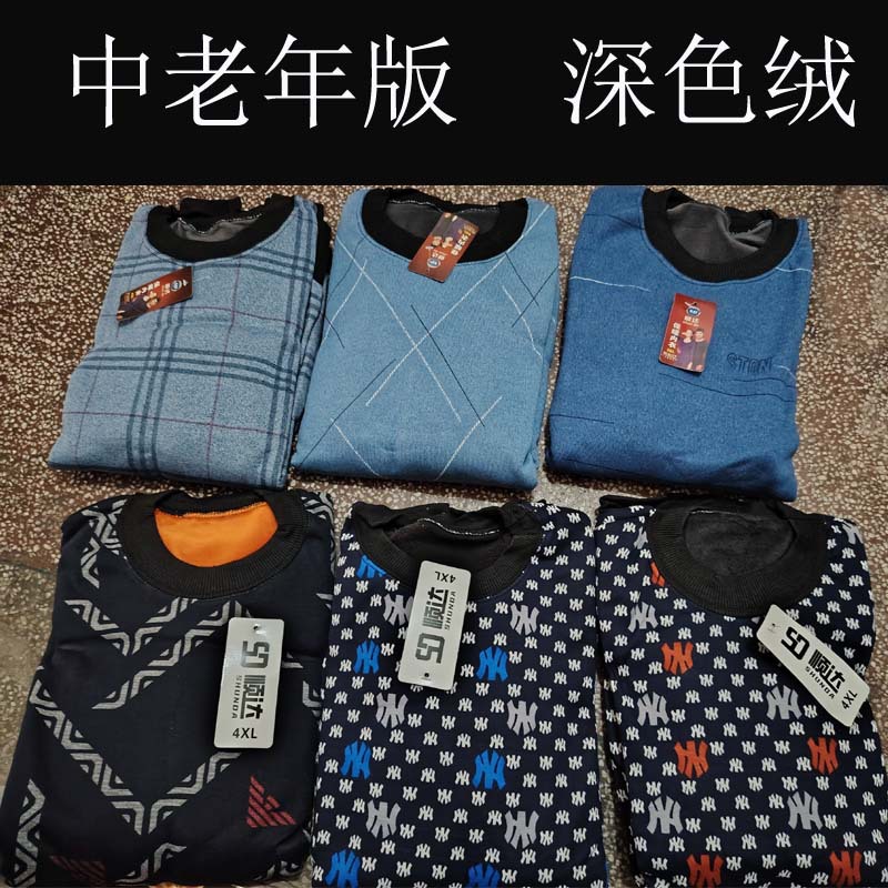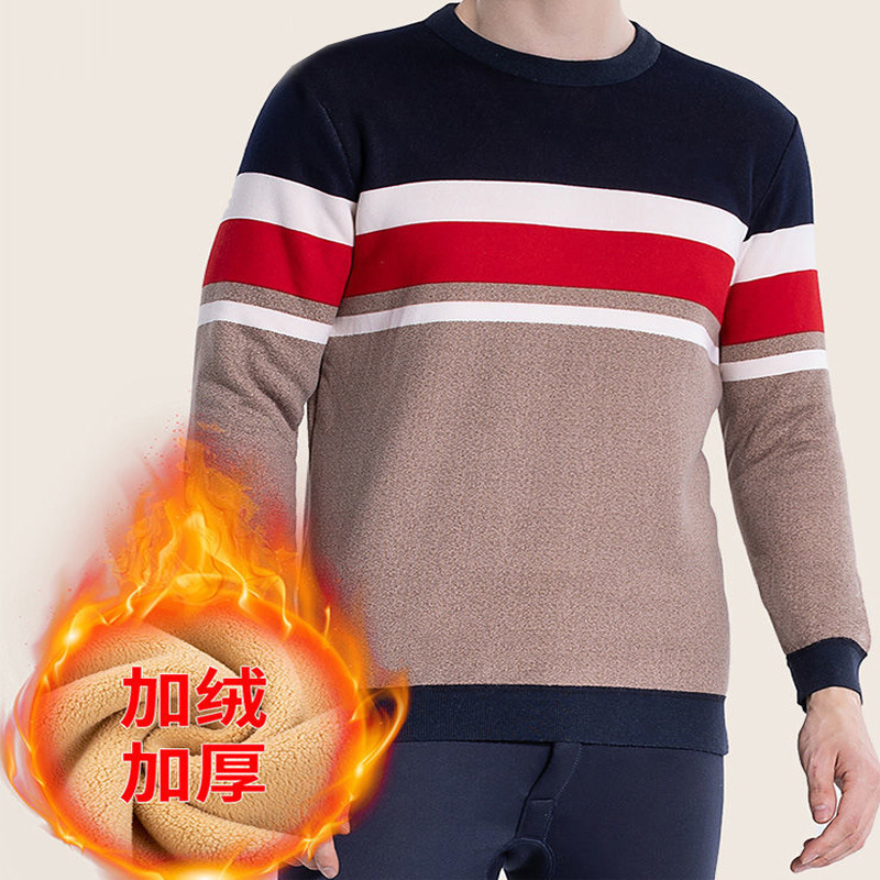 Men's Warmth Underwear with Fleece Round Neck Suitable for Middle-aged and Elderly