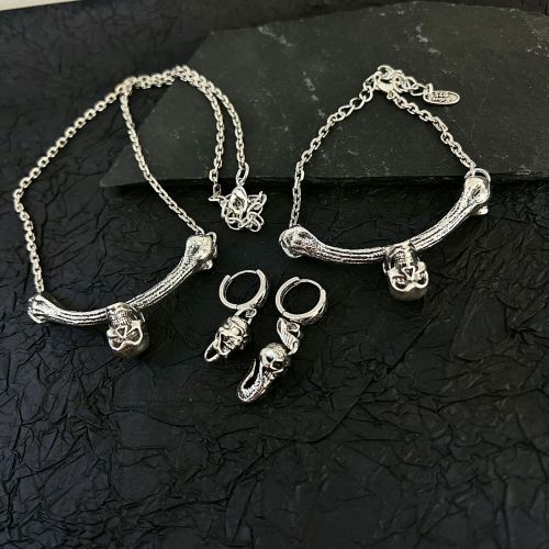 retro smile one skull necklace female light luxury minority design simple earring bracelet skull three-piece set wholesale 中文版