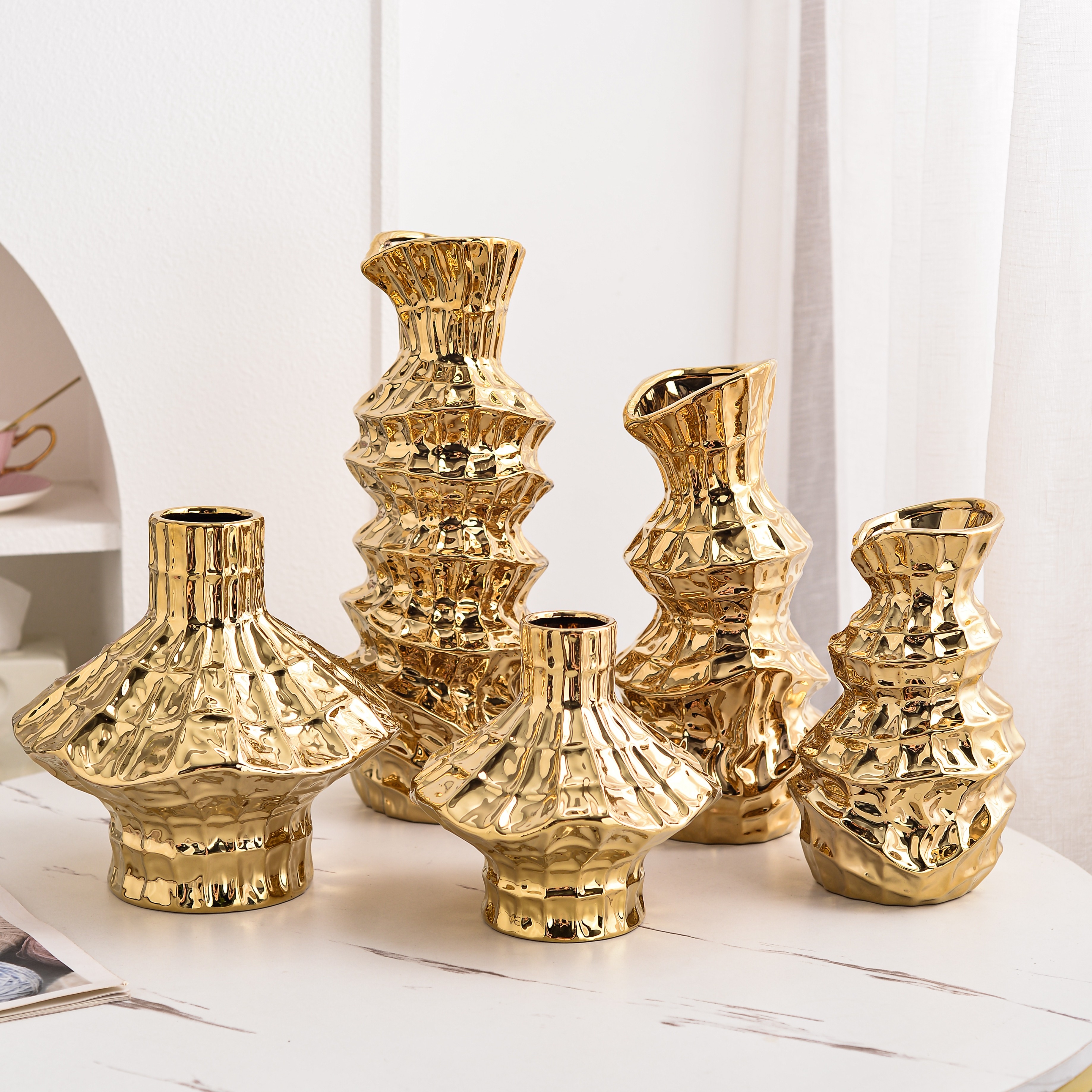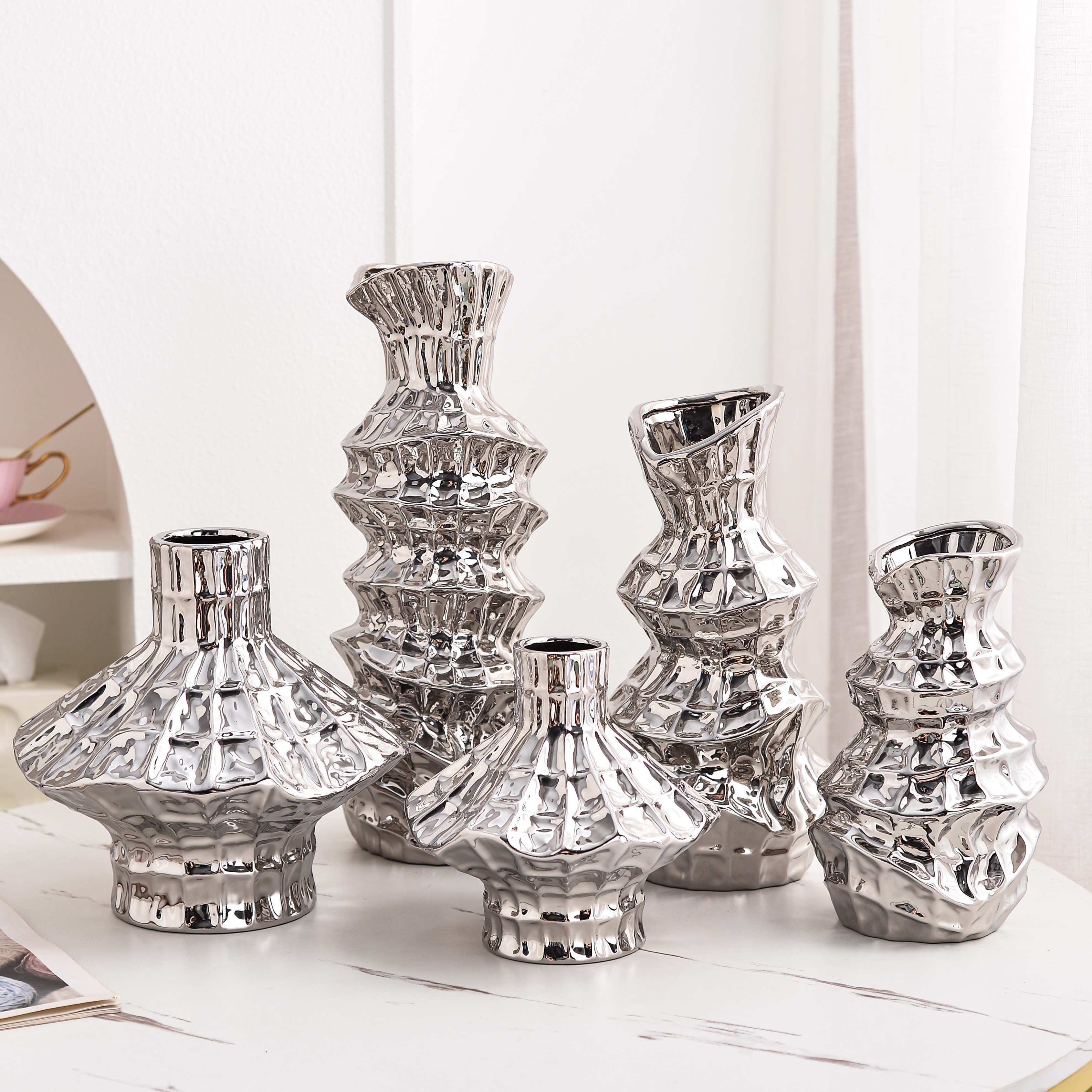 electroplated ceramic vase living room decorations creative dining table decoration high-grade flower container light luxury 中文版