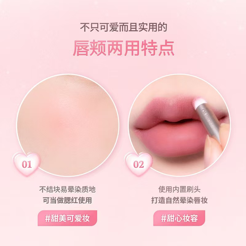 cross-border new dazzlelip blush matte mousse blush lip mud multi-purpose matte surface velvet lipstick with lip brush 中文版