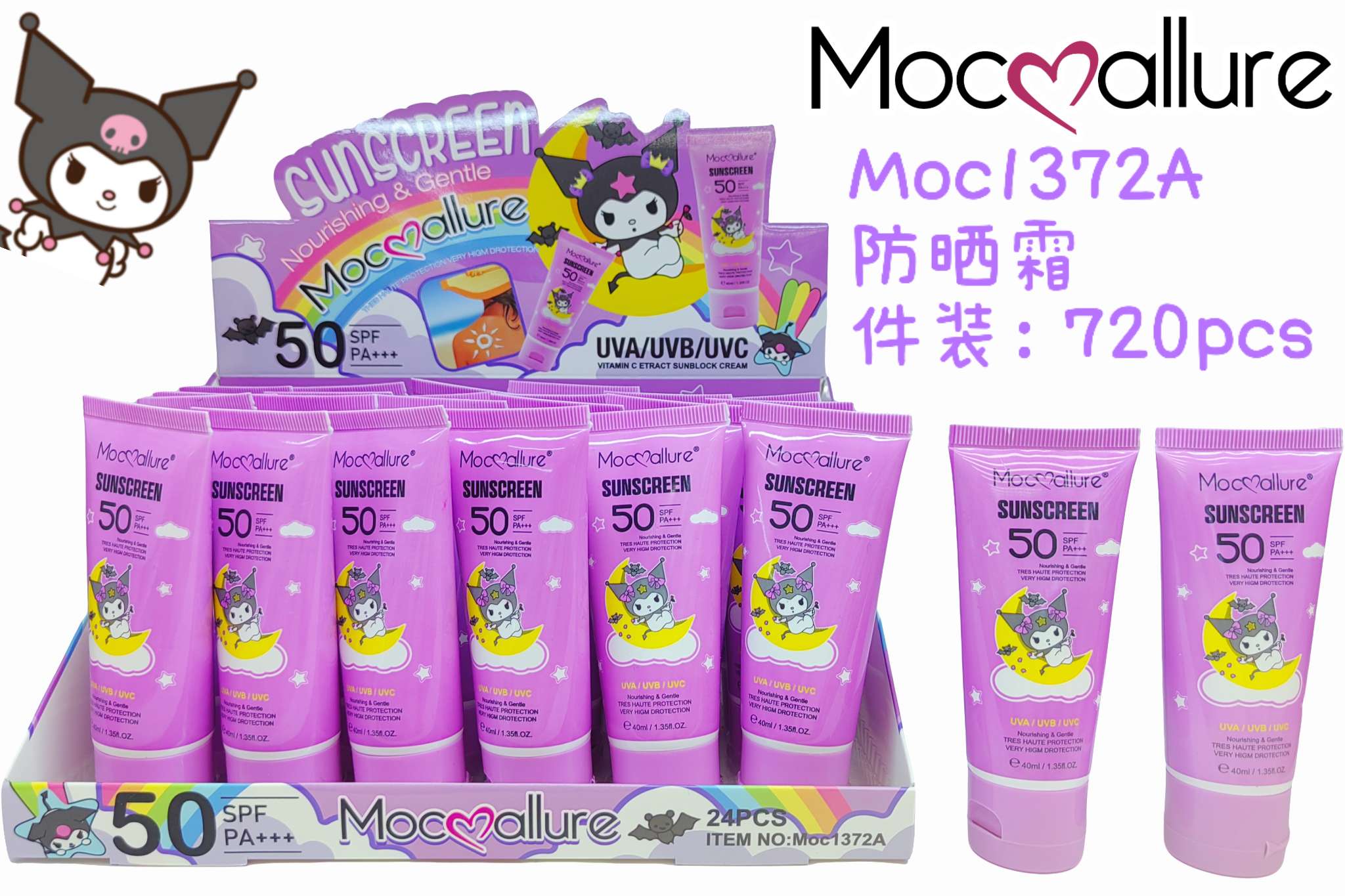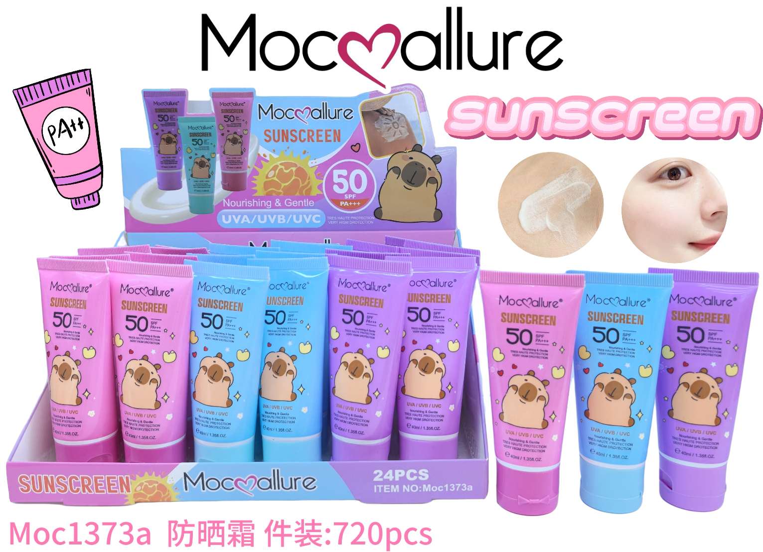 cross-border hot selling mocoallure isolation sunscreen refreshing uv protection waterproof sweatproof hydrating oil control 中文版
