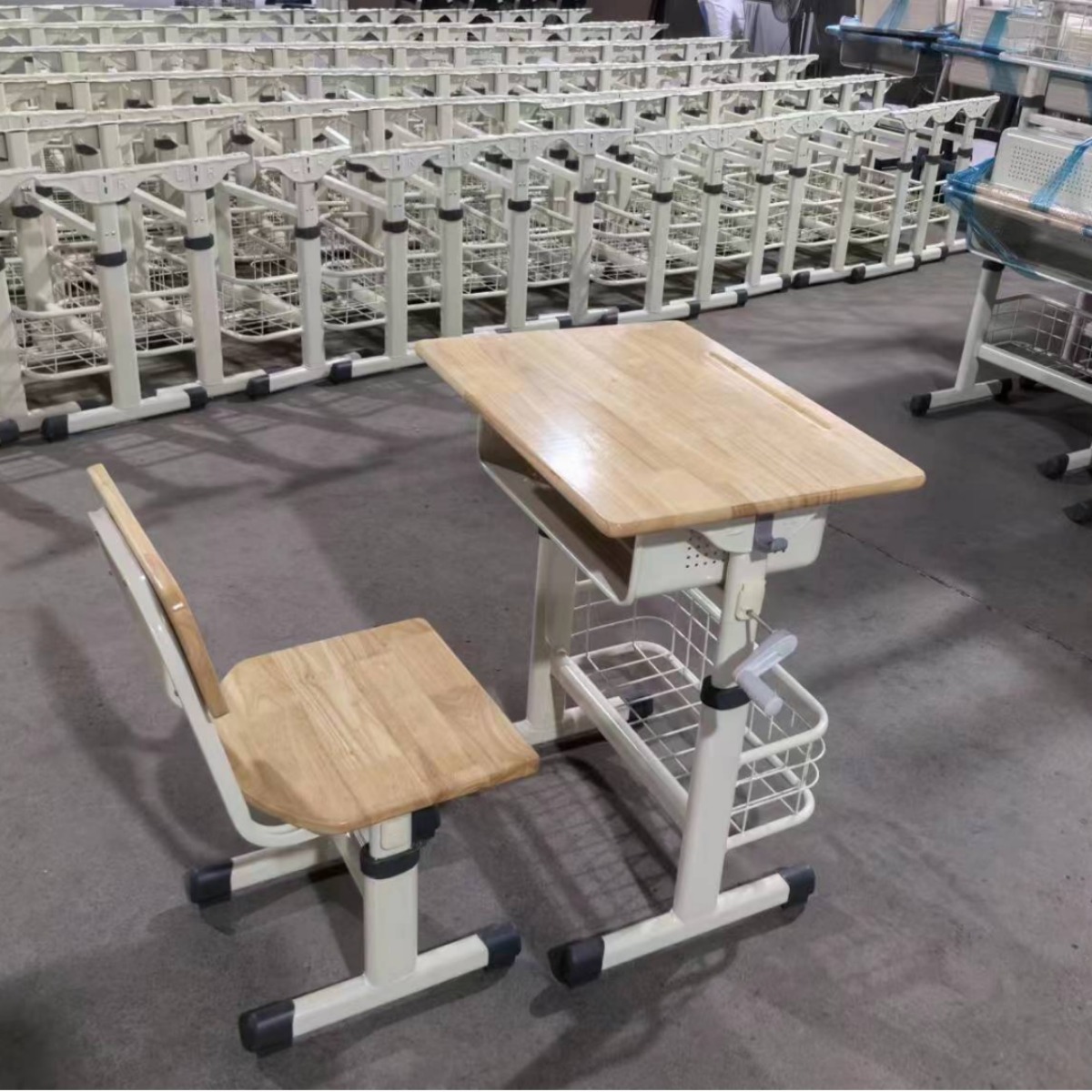 Hand-cranked lift-and-lower desks and chairs direct factory sales. Welcome to consult customer service! Customizable in any size and specifications.