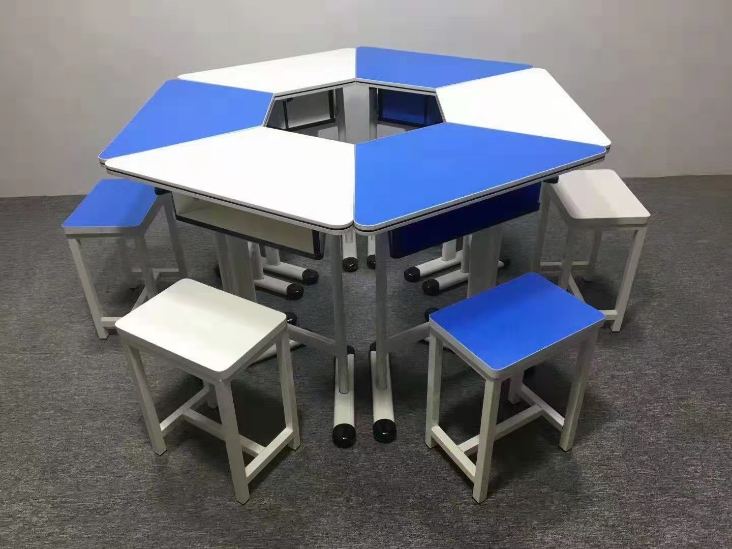 Hexagonal Puzzle Table is Customizable with Multiple Colors Available. Welcome to Consult!