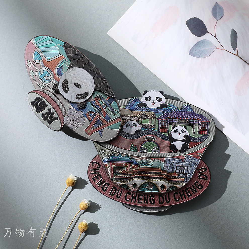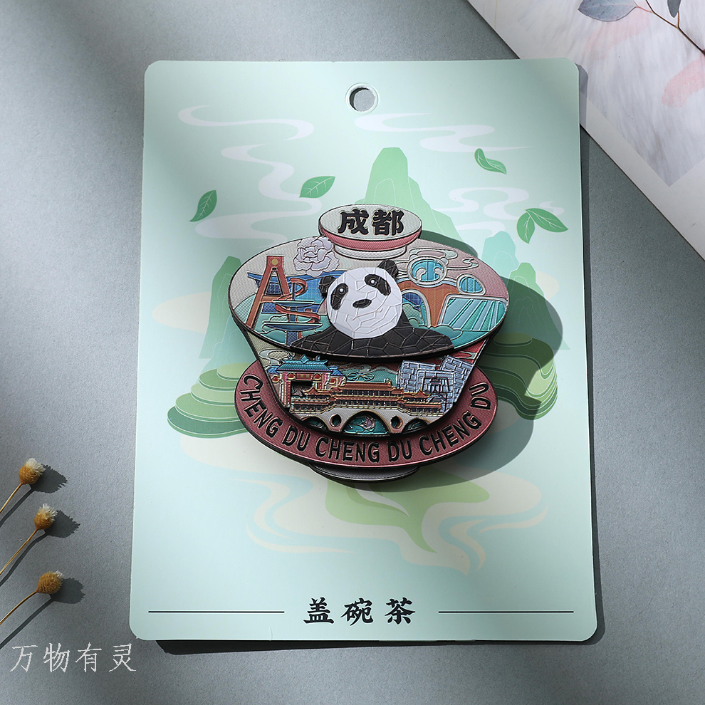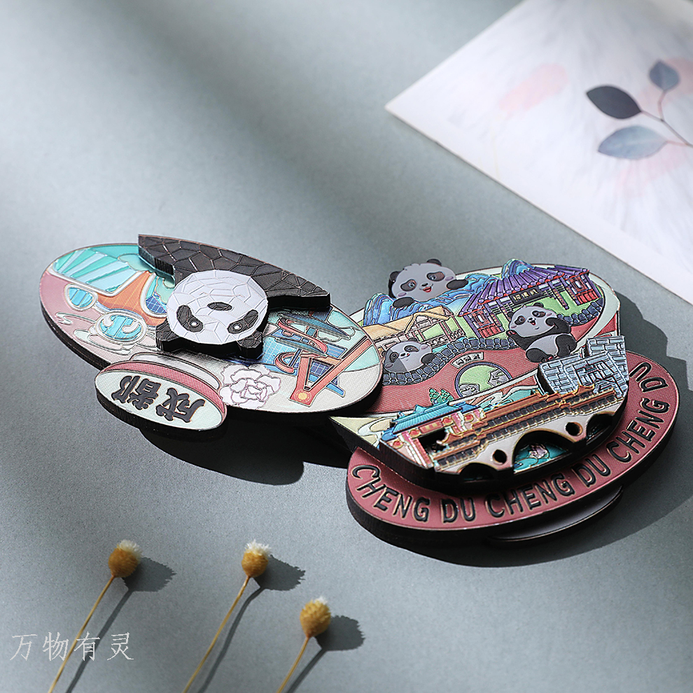 chengdu gaiwan tea giant panda refridgerator magnets base genuine souvenir wooden multi-layer magnetic paste flower cultural creative peripheral 中文版