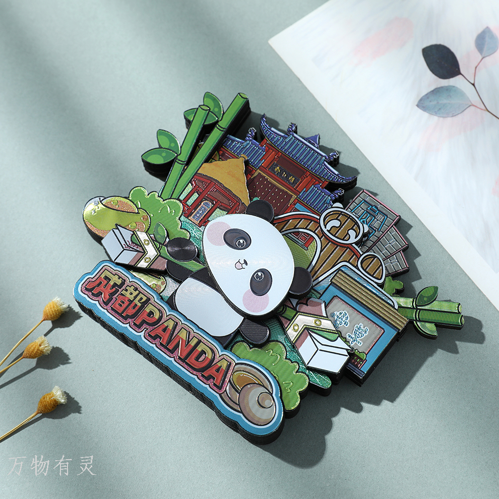 cute sanxingdui panda flower refridgerator magnets decorative magnetic sticker chengdu base souvenir peripheral cultural creative small gift 中文版
