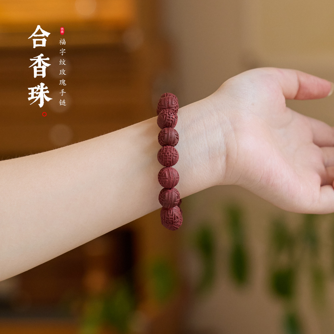 | Name | 12MM Fortune Character Pattern Rose Incense Bead Circle (16 Beads)