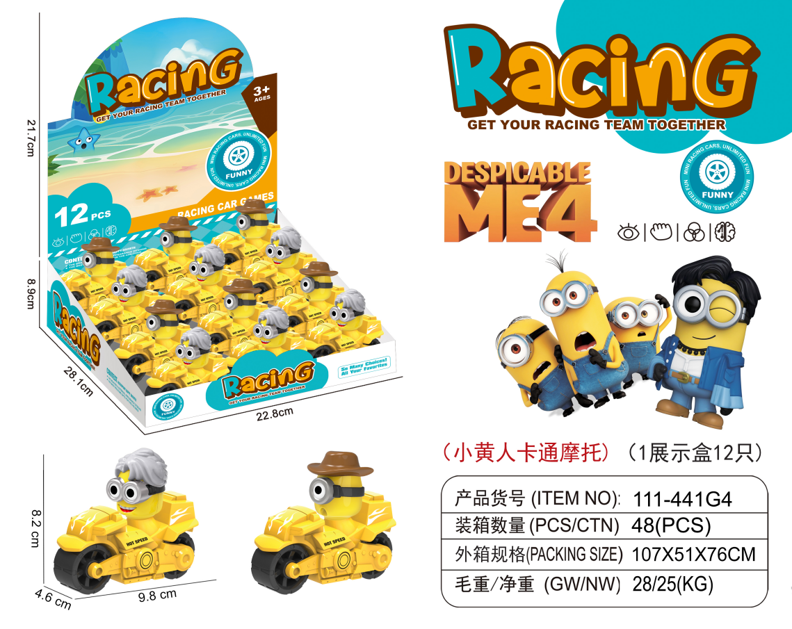 cross-border e-commerce children's popular minions motorcycle toys children's cartoon educational toy car 中文版