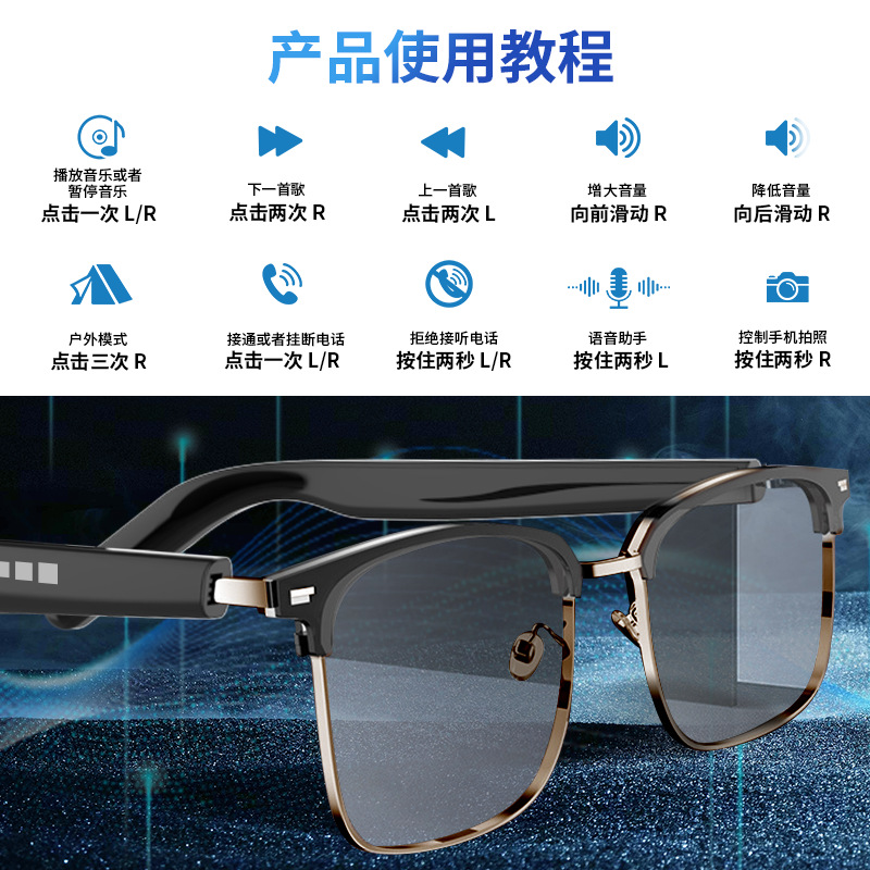 foreign trade exclusive ai smart glasses gt13 uv-proof bluetooth glasses sunglasses anti-blue light call changeable glasses 中文版